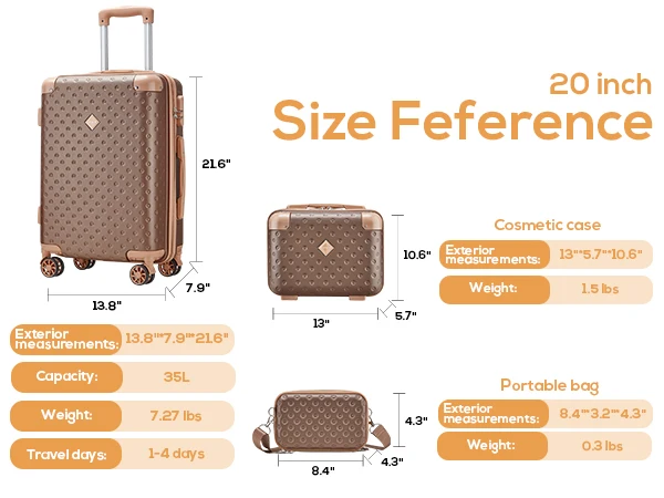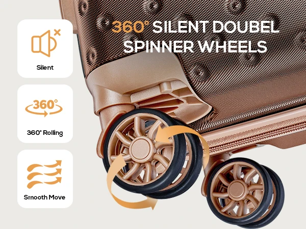 • 360° Silent Double Spinner Wheels: The carry-on measures 21.6×13.8×7.9 inches and is airline-approved. It features durable rollers for smooth, quiet travel through airports and on roads. Move your luggage effortlessly!