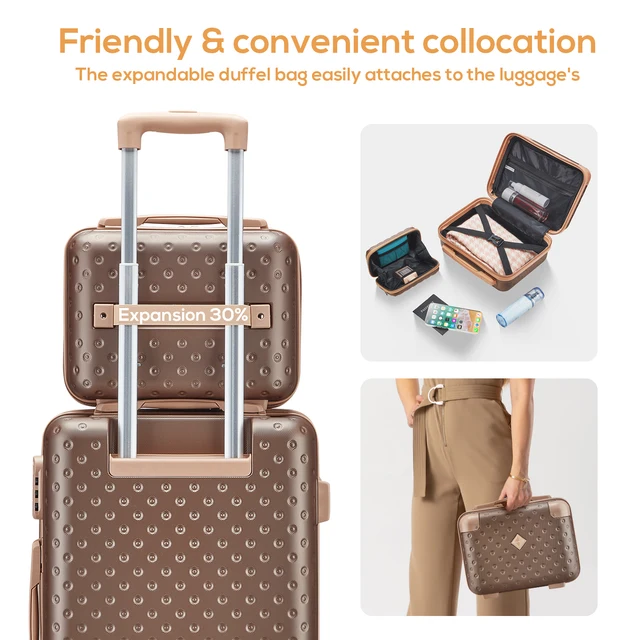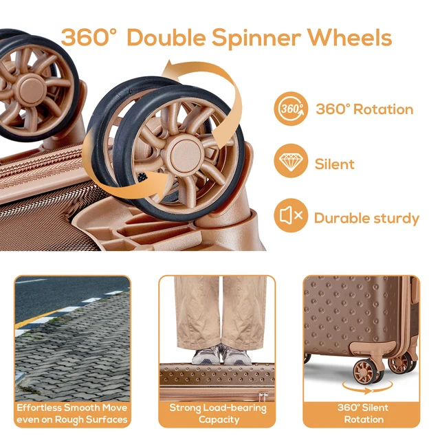 • 360° Silent Double Spinner Wheels: The carry-on measures 21.6×13.8×7.9 inches and is airline-approved. It features durable rollers for smooth, quiet travel through airports and on roads. Move your luggage effortlessly!