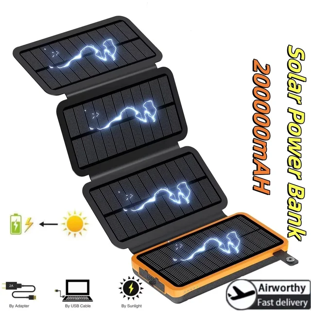 200000mAH Solar Power Bank Folding Solar Panels 5V 2A USB Output Portable Outdoor Camping Sun Power For IPhone Android