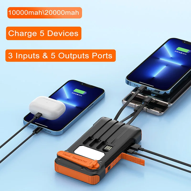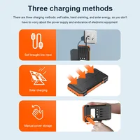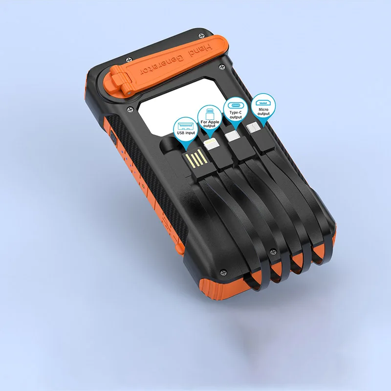 1. There are three charging methods: Fast charging with its own cable, hand crank charging, and solar powered can store 3A power for the power bank, greatly reducing the charging time, and no longer worrying about the power supply and endurance of electronic devices