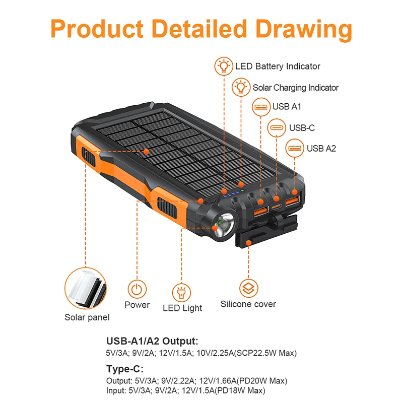 Product type: Ultra-large capacity dust-proof solar mobile power bank
