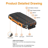 20000mAh Solar Power Bank Outdoor Charger Portable USB C Fast Charging External Battery LED Light for iPhone 17 16 15 14 13 12 Samsung Xiaomi