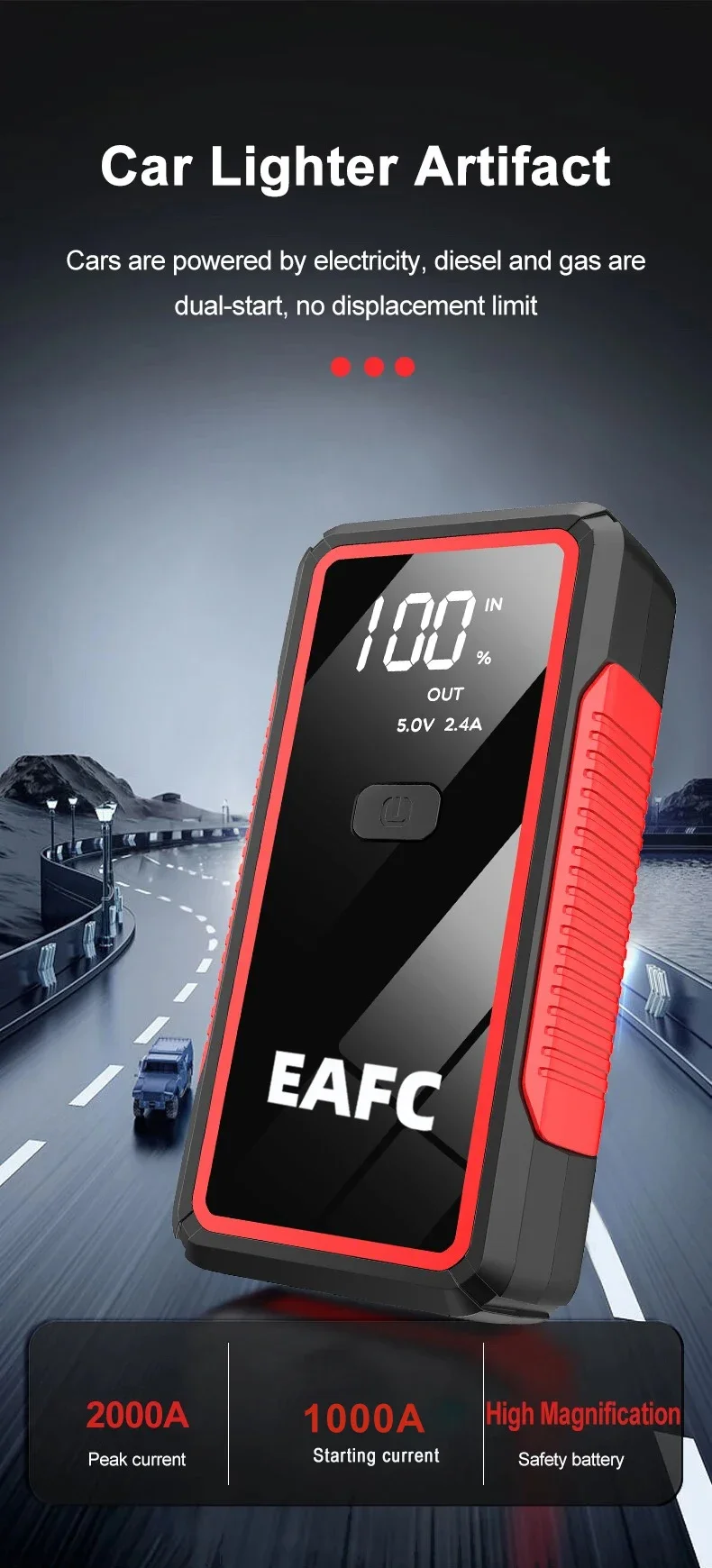 �� 2000A Car Lighter Jump Starter – Your Ultimate Emergency Car Power Solution!