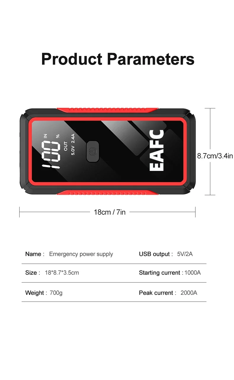 Never worry about a dead battery again—whether it’s gasoline or diesel! With a massive 2000A peak current, this compact powerhouse delivers instant starts in any condition. No displacement anxiety—supports up to 6.0L gasoline and 4.0L diesel engines.