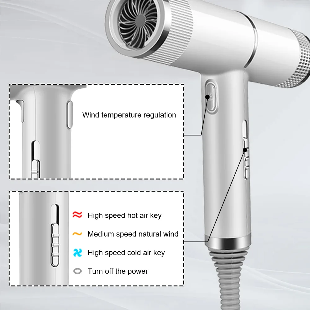 Efficient & Fast Drying: Powered by a 2000W motor with speeds up to 10,000 RPM, this dryer ensures quick, efficient drying. Negative ion technology accelerates drying time, minimizes heat damage, and delivers flawless results.