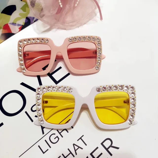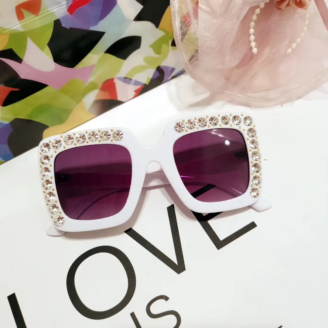 2022 Brand Oversize Diamond Sunglasses Kids UV400 Sun Glasses Big Frame Goggle Baby Boys Girls Lovely