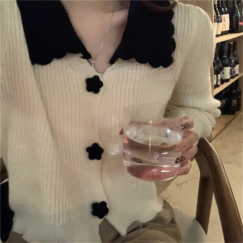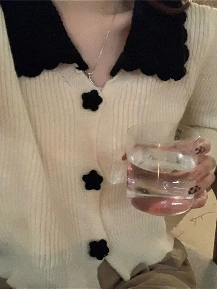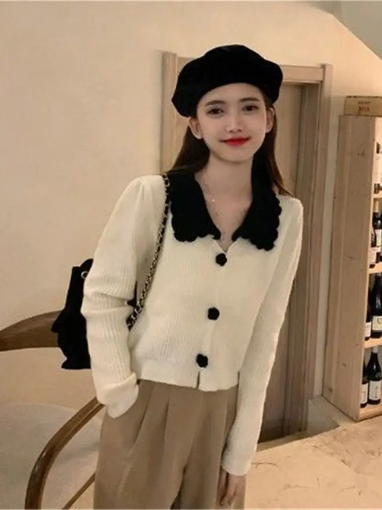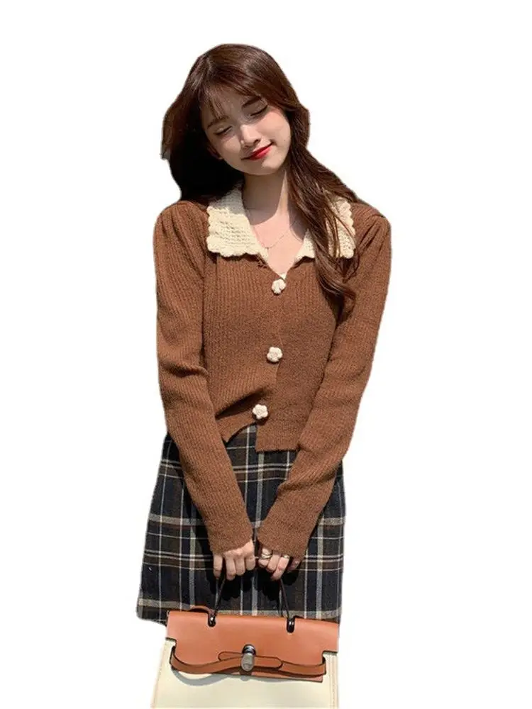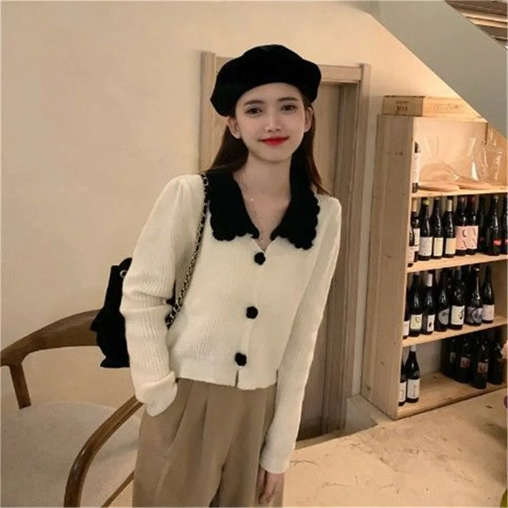Elegant Solid V-neck Metal Buttons Women Knit Cardigan Fashion Slim Lantern Long Sleeve Sweater 2024 Autumn Female Chic Knitwear