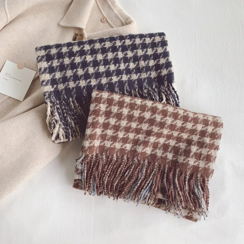 100% New Women Wool Scarf Shawl Winter Warm Soft Knitted Triangle Scarf Fashion Brand Bandana Lady Wool Tassel Blanket Scarves