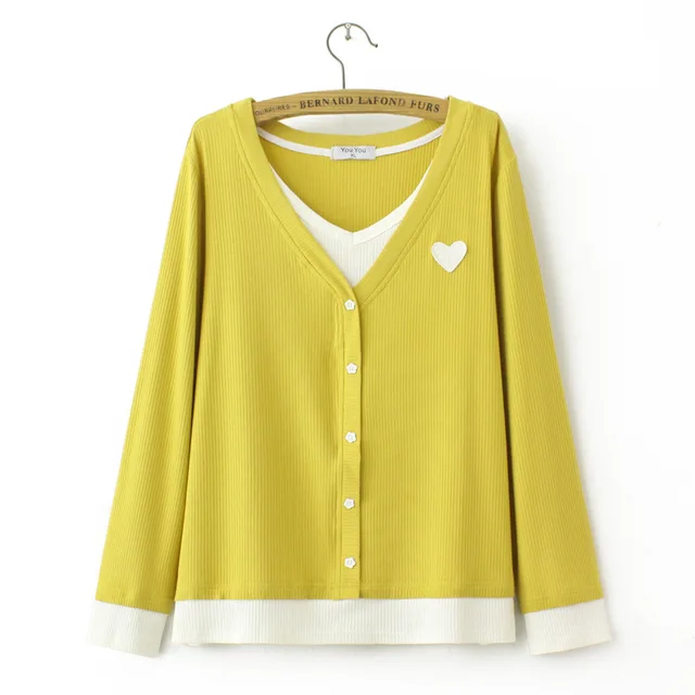 Be the first to review “2023 Autumn Clothes Women T-Shirt Plus Size Cute Wind Flower Buttons Tee Long Sleeve Fake Two Pieces”