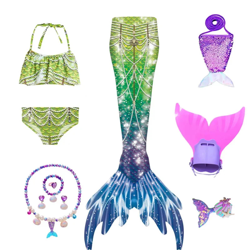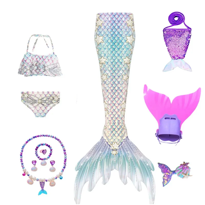 Style 1:6 pcs/set (mermaid tail TUPE tops underwear fins necklace set headwear)