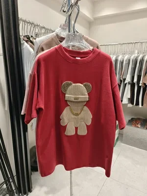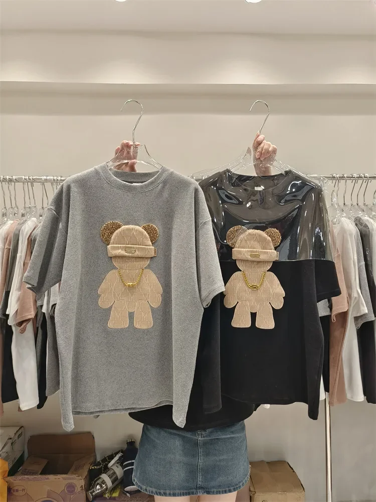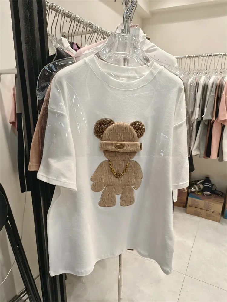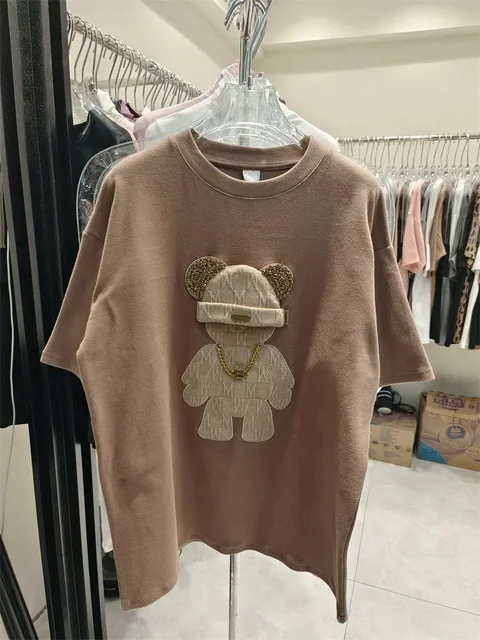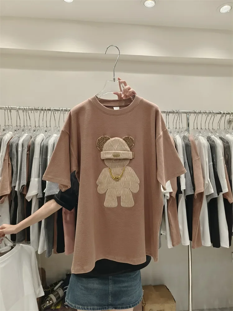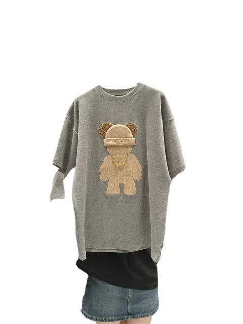 2023 New Spring Summer Cartoon Printing Round Neck Short Sleeve T-Shirt Women's Loose Fit Versatile Medium Length Student Top Tr