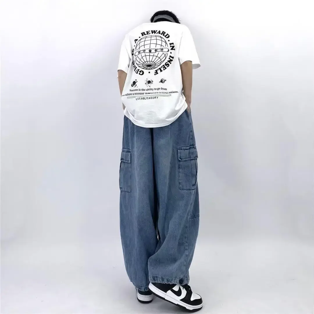 • Versatile Hip-Hop Design :The 2023 New High Street Hip-Hop Overalls Straight Loose Large Pocket Jeans are a versatile design, perfect for both men’s and women’s casual wear.