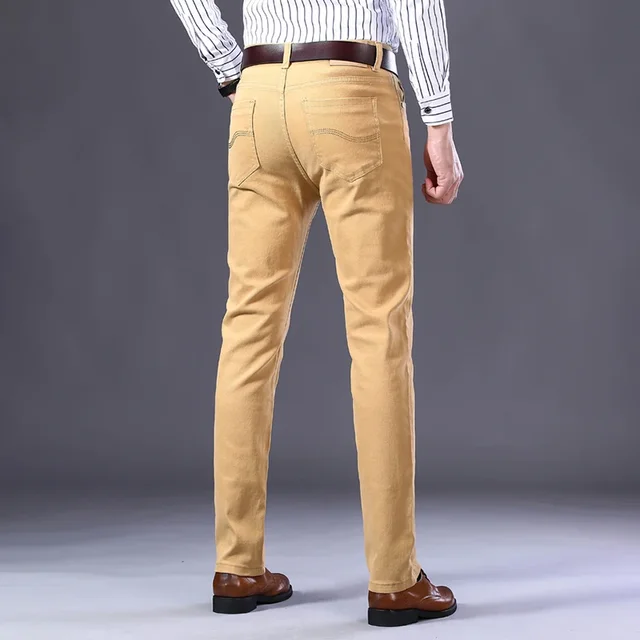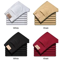High Waist Mens Pants Casual Black Khaki Blue Straight Stretch 97% Cotton Trousers for male Autumn 2025 New Size 38 40 42 44