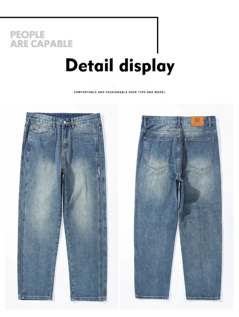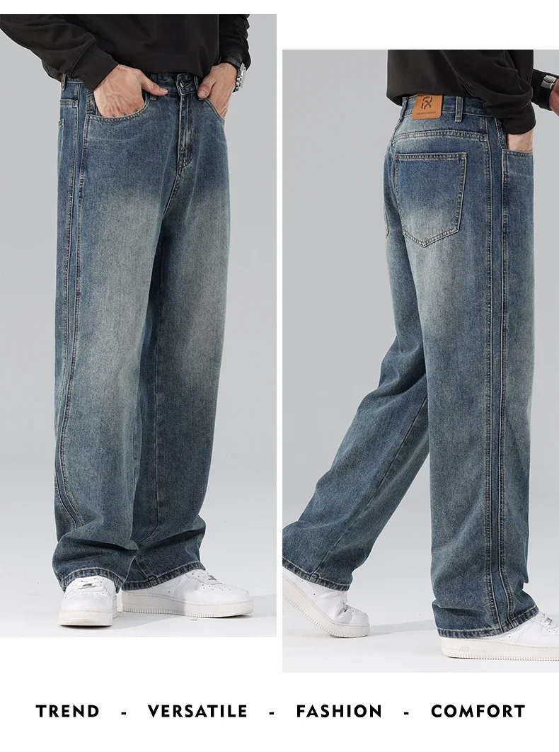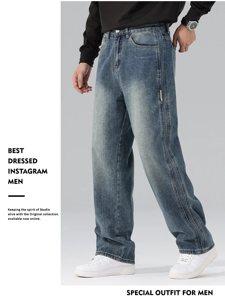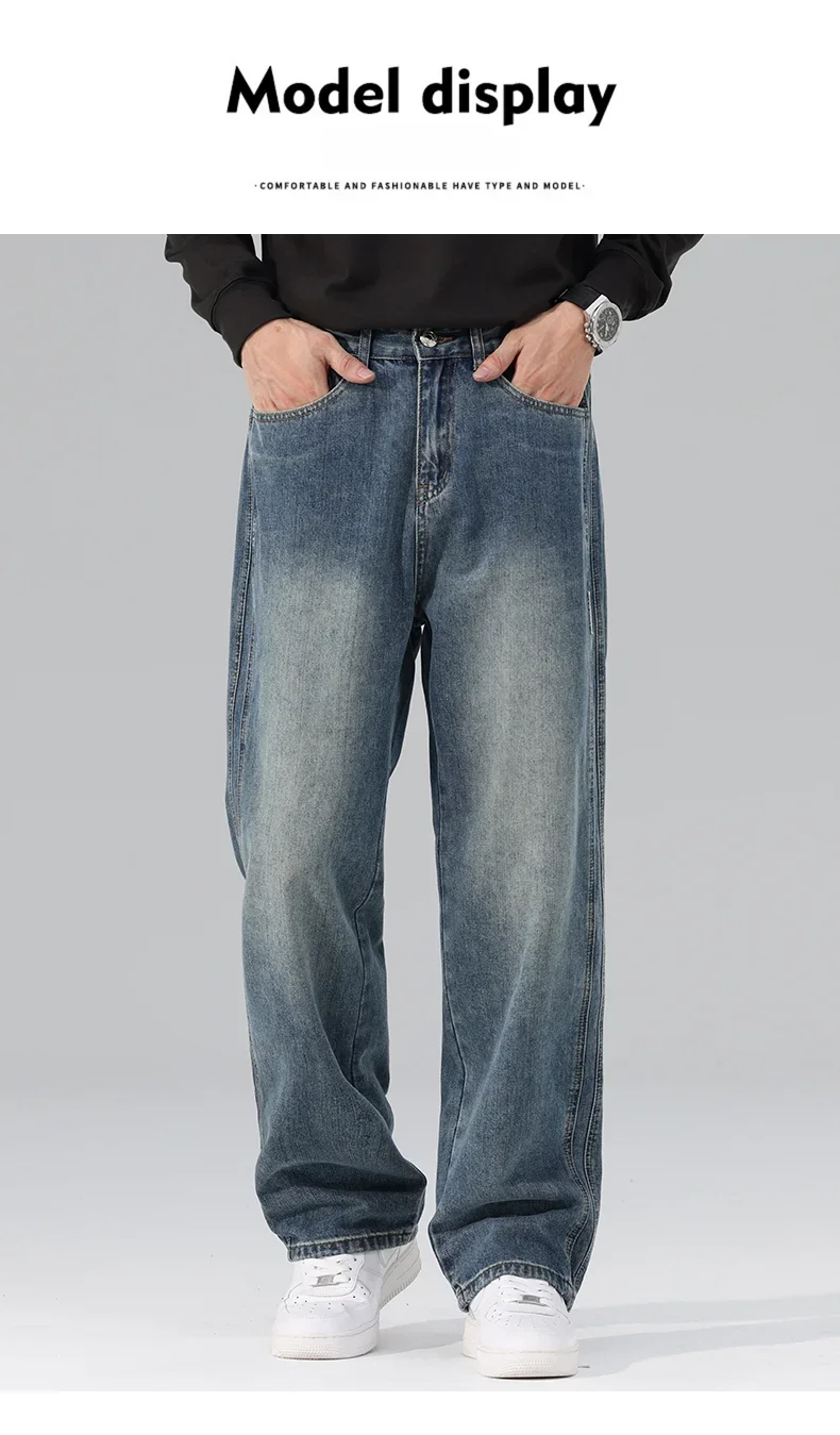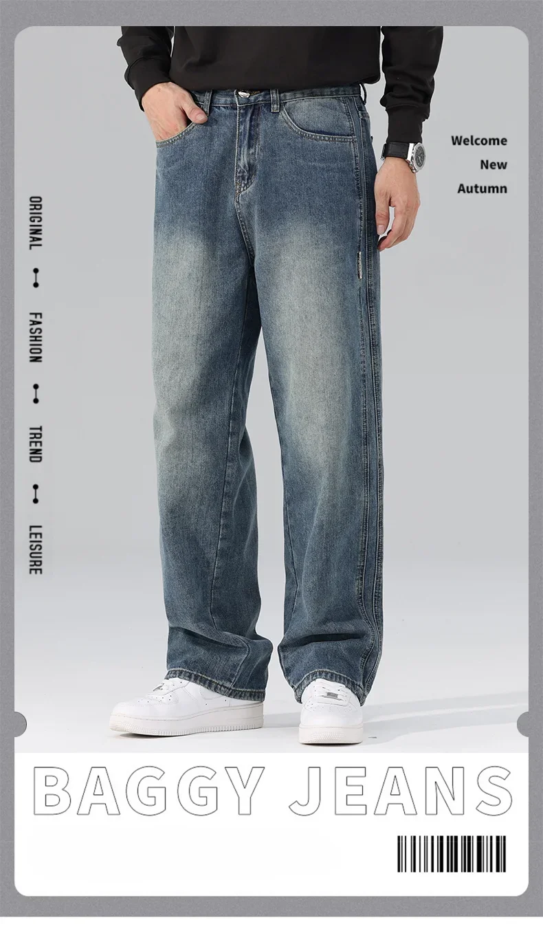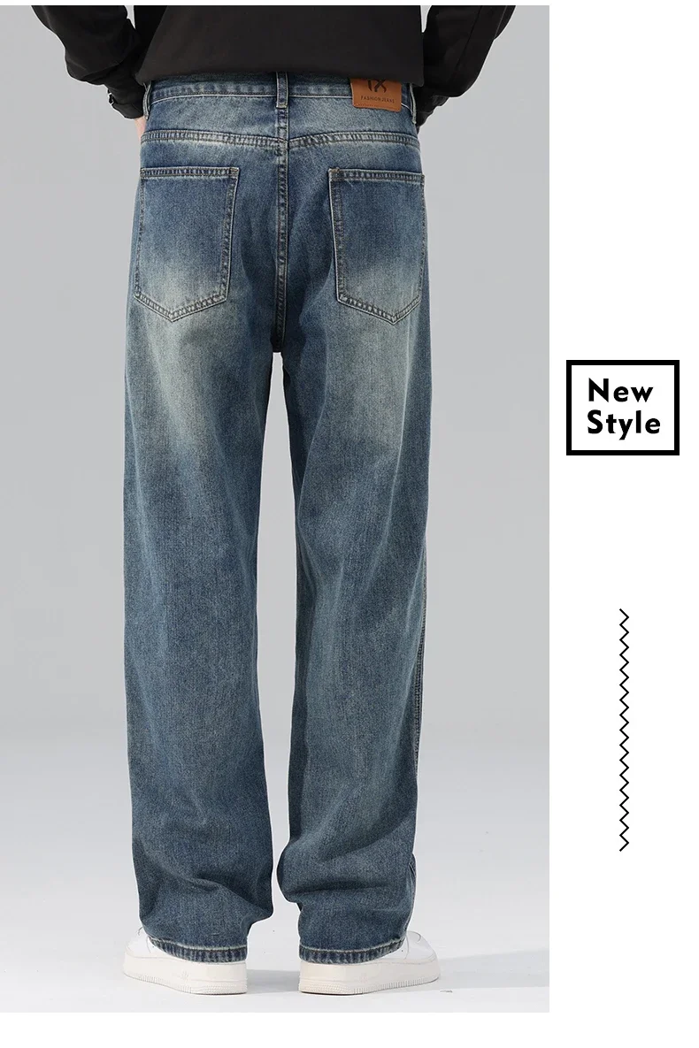 2024 Autumn New Baggy Jeans Men’s Straight Casual Vintage Streetwear Trousers Male Brand Fashion