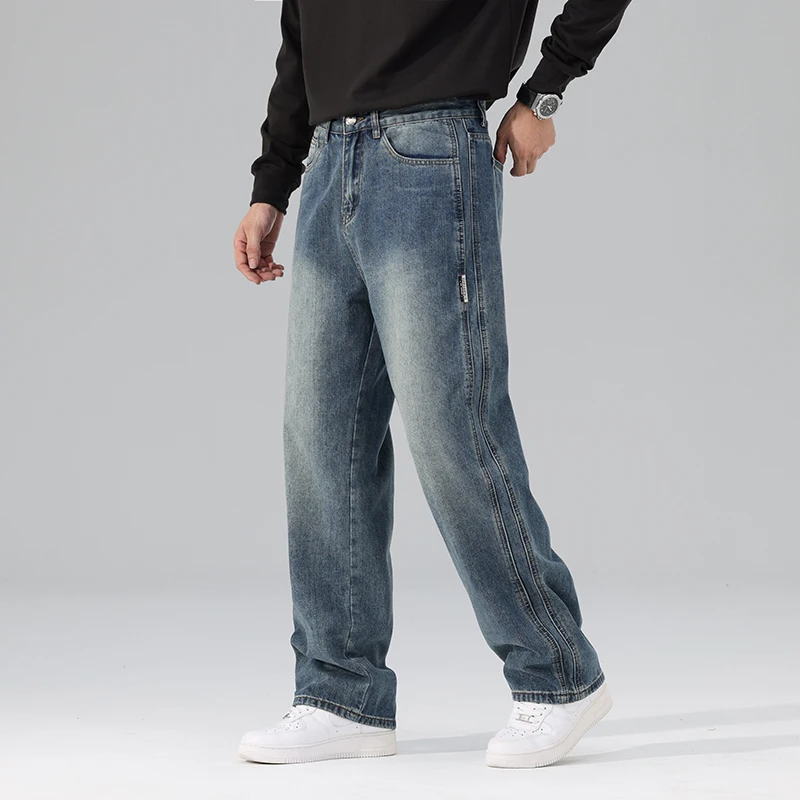 2024 Autumn New Baggy Jeans Men’s Straight Casual Vintage Streetwear Trousers Male Brand Fashion