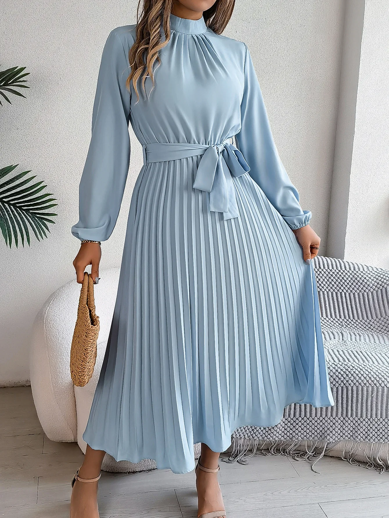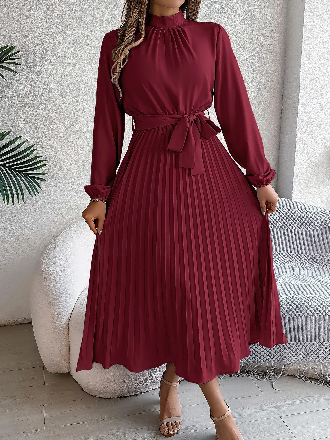 • Elegant Design : This dress features an elegant collar and waist pleating, making it a stylish choice for autumn and winter occasions.