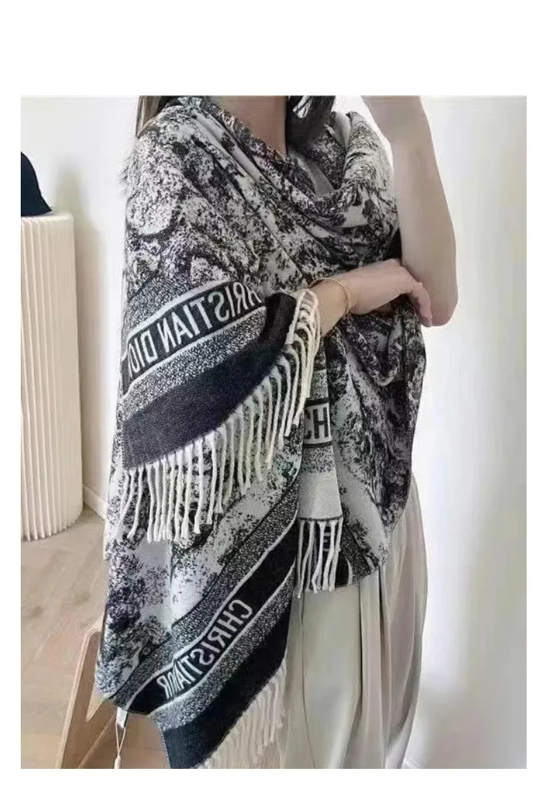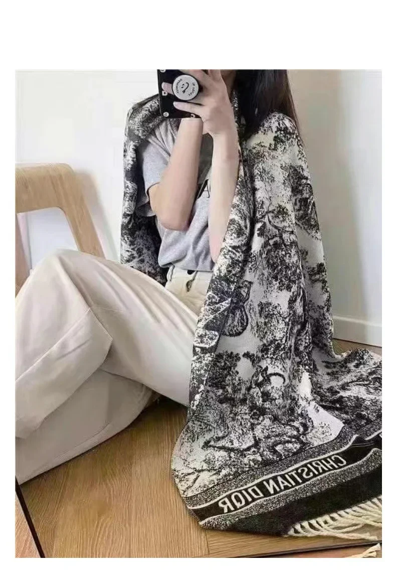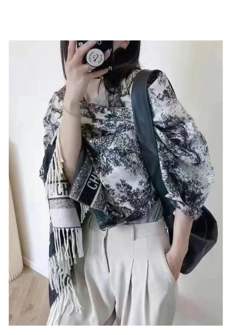 2024 Autumn Winter Soft Neck Warming Scarf Outer Wear Thermal Shawl Chinese Style Calligraphy Print Fashionable