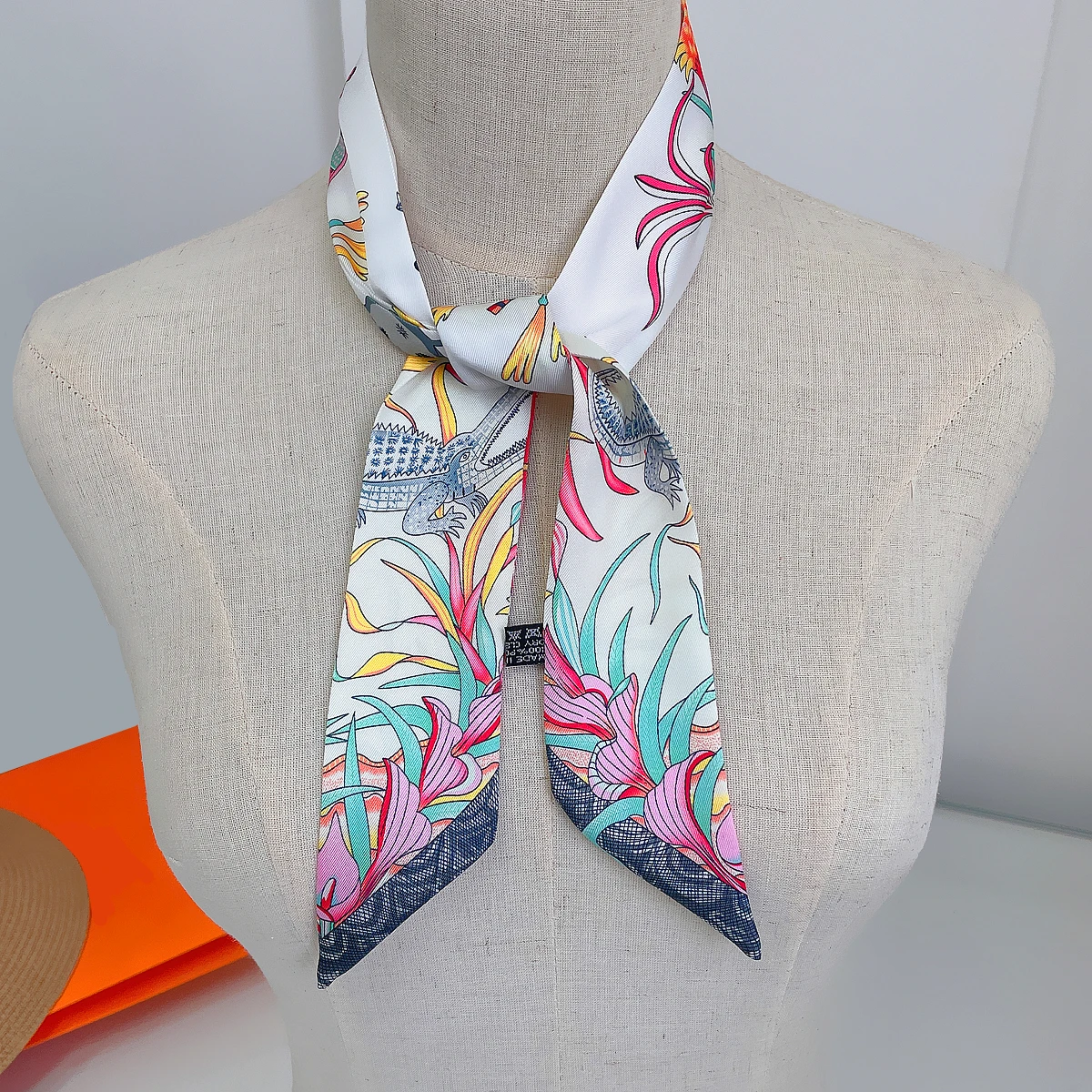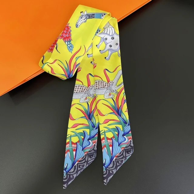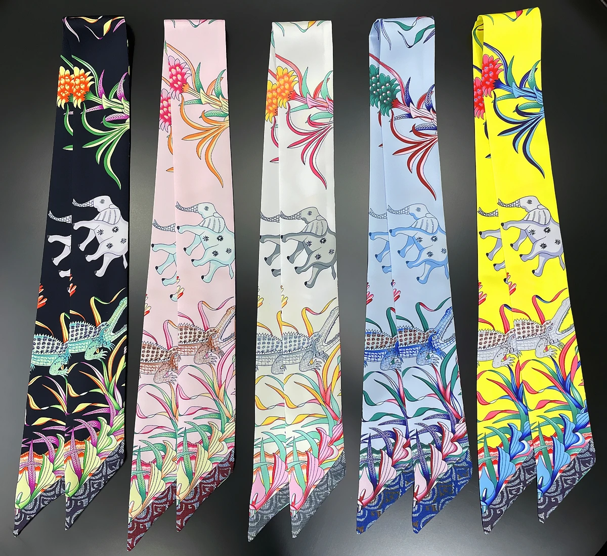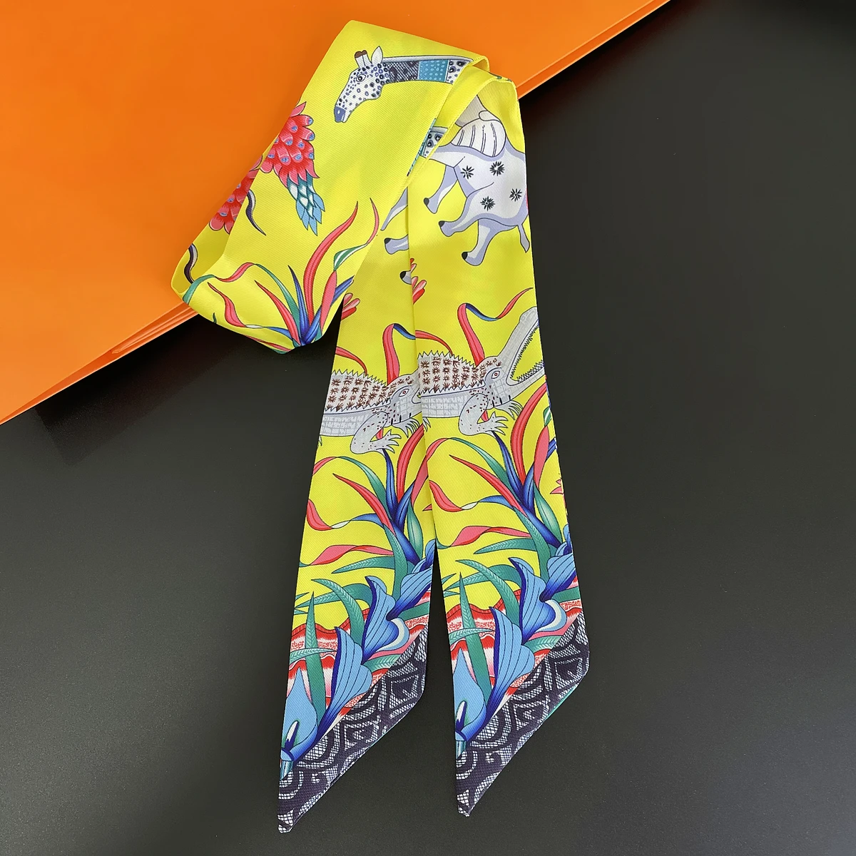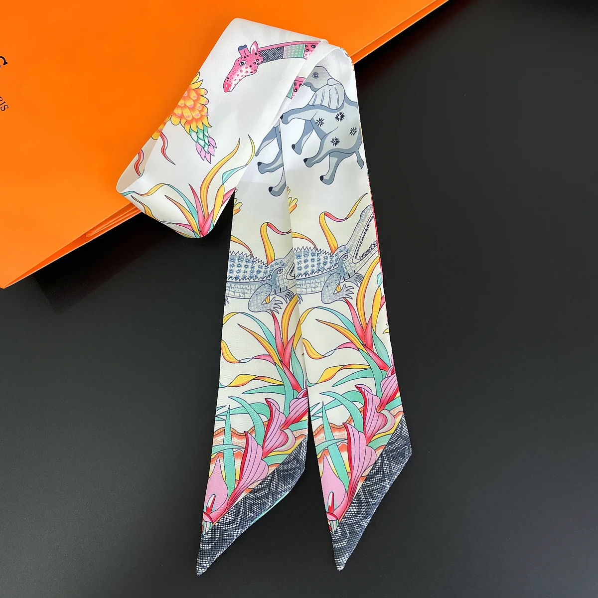 2024 Brand Design Elephant Giraffe Women Scarf Luxury Silk Scarf Fashion Hair Headband Foulard Skinny Bag Scarves Neckerchief