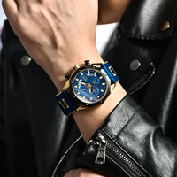 Luminous, waterproof, chronograph, calendar, large dial, leather strap, fashion, casual