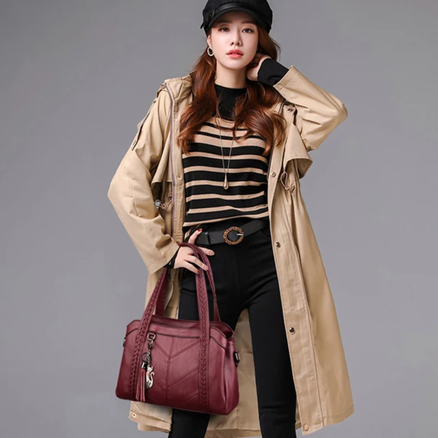 Luxury Hand bags For Women High Quality Pu Leather Three layers Ladies Shoulder Crossbody Bag Bucket Tassel Commuting Sac A Main