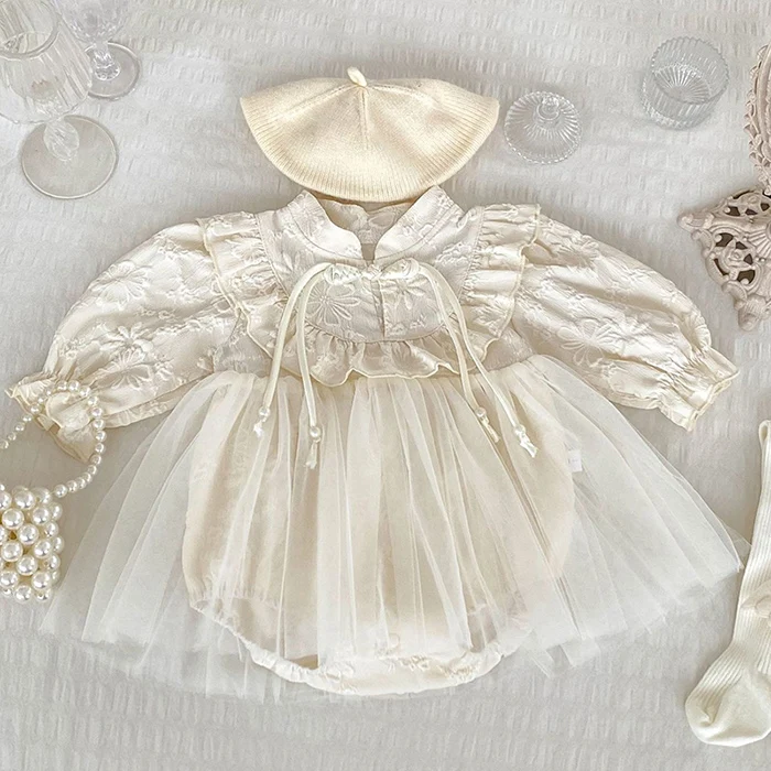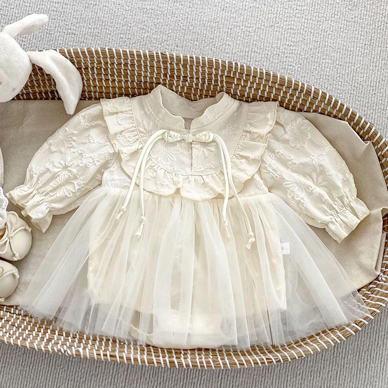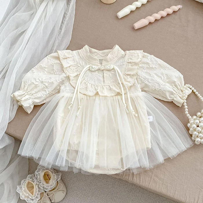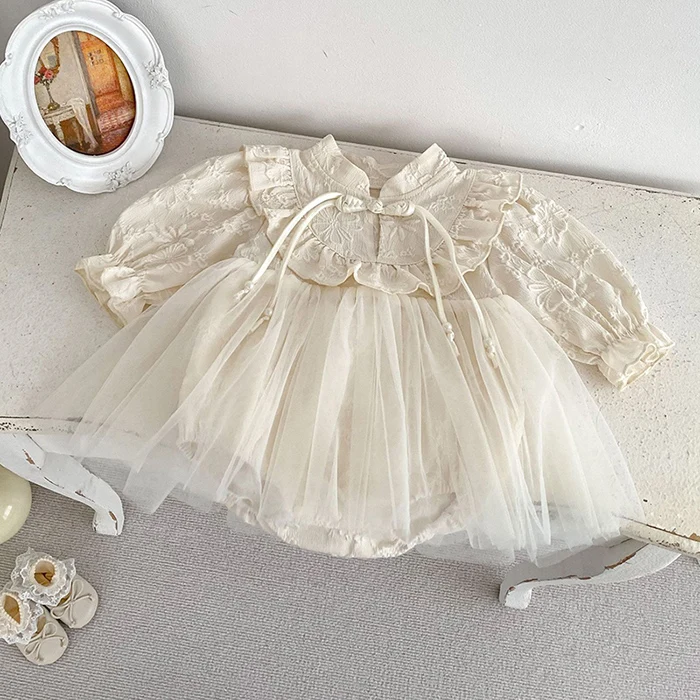 2025 New Autumn Toddler Baby Girl Romper Long Sleeved Embroidery New Year Infant Baby Jumpsuit Christmas 0-24M Children Clothes