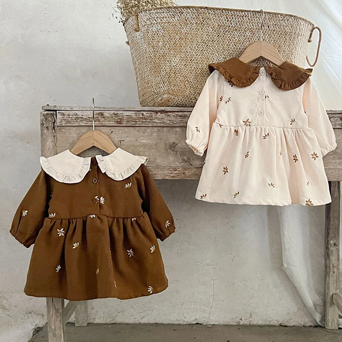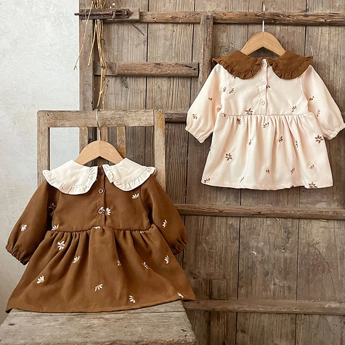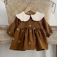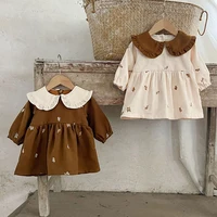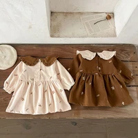 2024 New Autumn 0-4Yrs Baby Girl Party Dress Kids Princess Dresses Long Sleeved Corduroy Embroidery Dress