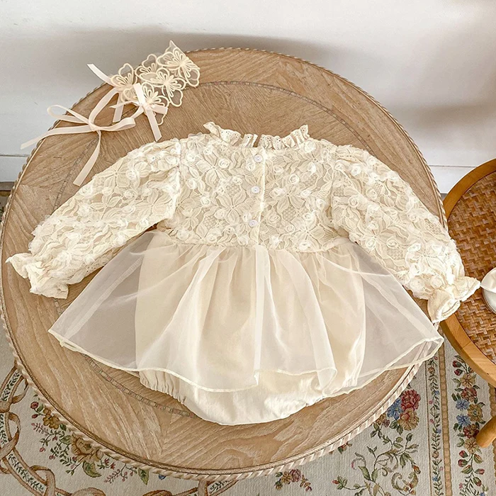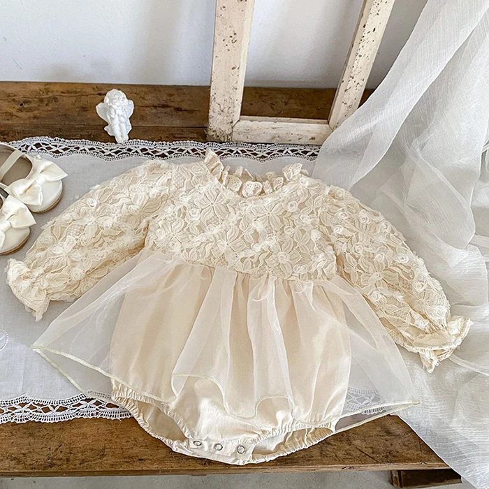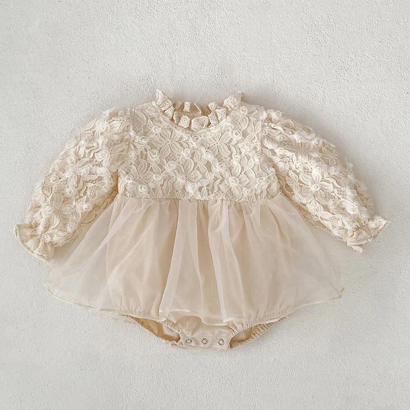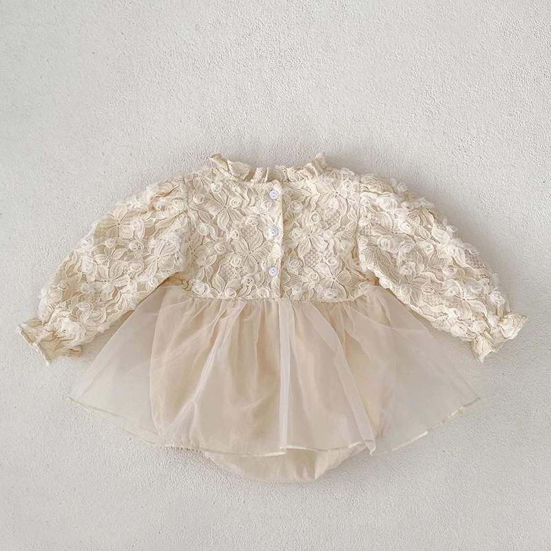 2024 New Autumn Korean Style Climbing Suit Long Sleeved Cotton Mesh Splicing Toddler Baby Girls Romper