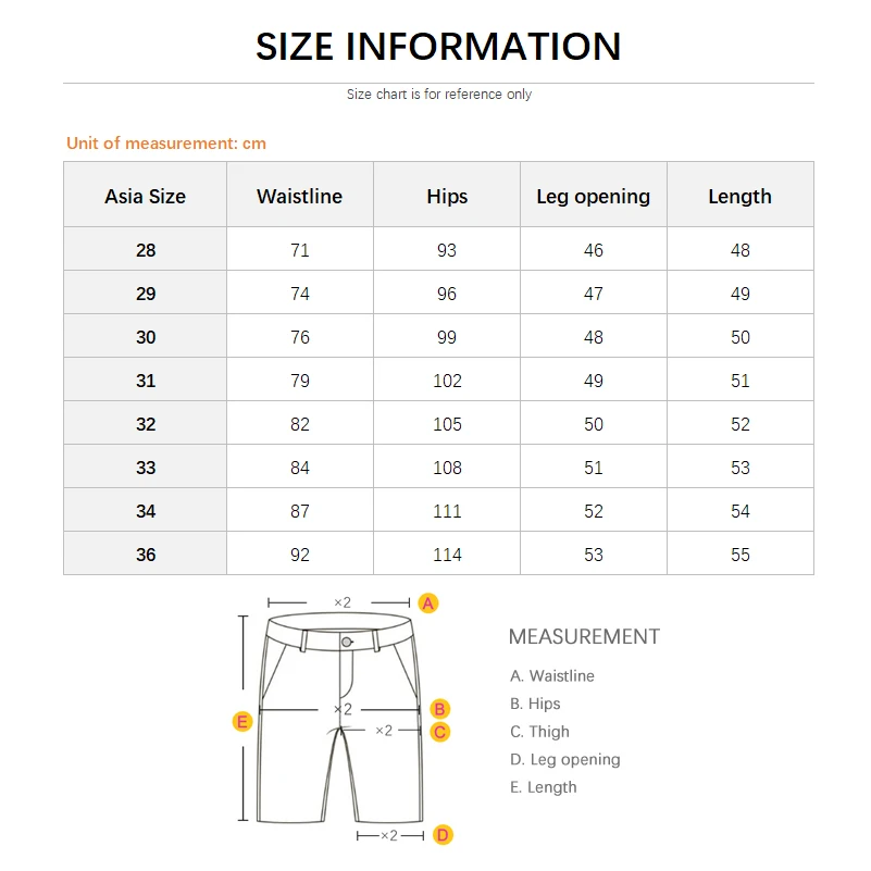 1. The size is Chinese size, pants size 32 = 32 inches waist = 81.5cm waist.