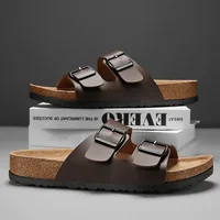 Kidmi Men's Suede Clogs Cork Footbed Clogs for Women Soft Leather Adjustable Buckle Slip-on Potato Shoes Sandals Beach Slippers