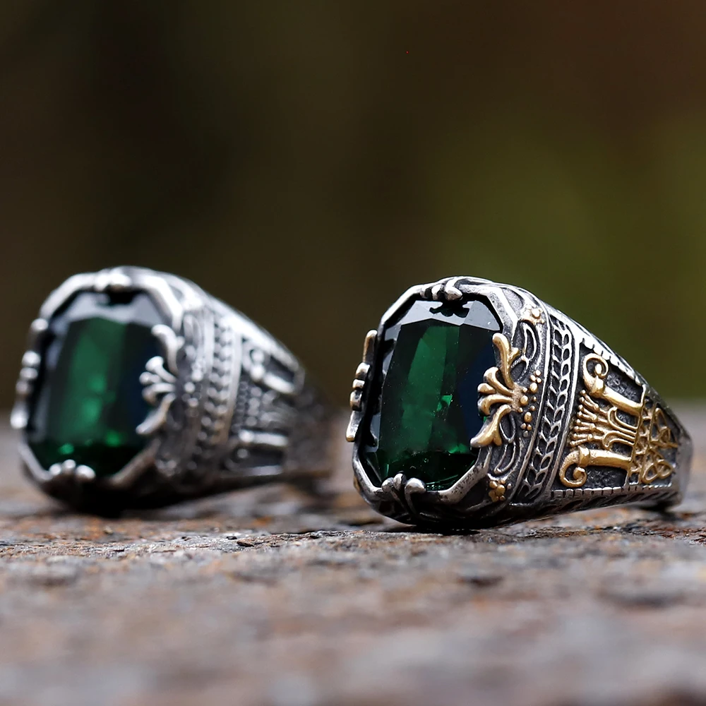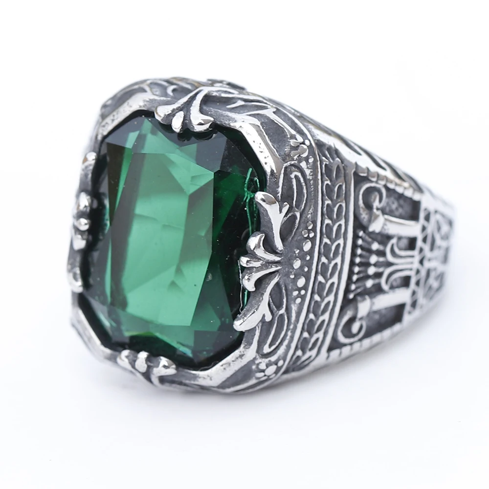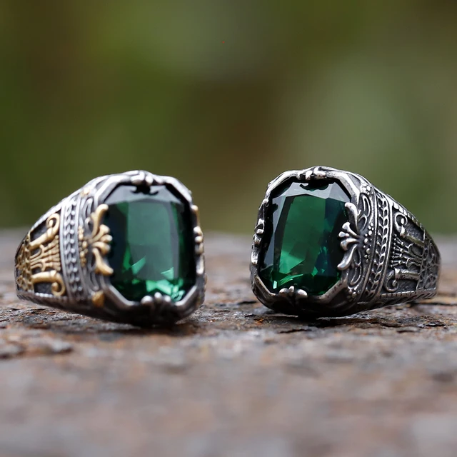 High Quality Vintage Green Crystal Thai Silver Ladies Engagement Ring Wholesale Jewelry For Women Cheap Gifts No Fade