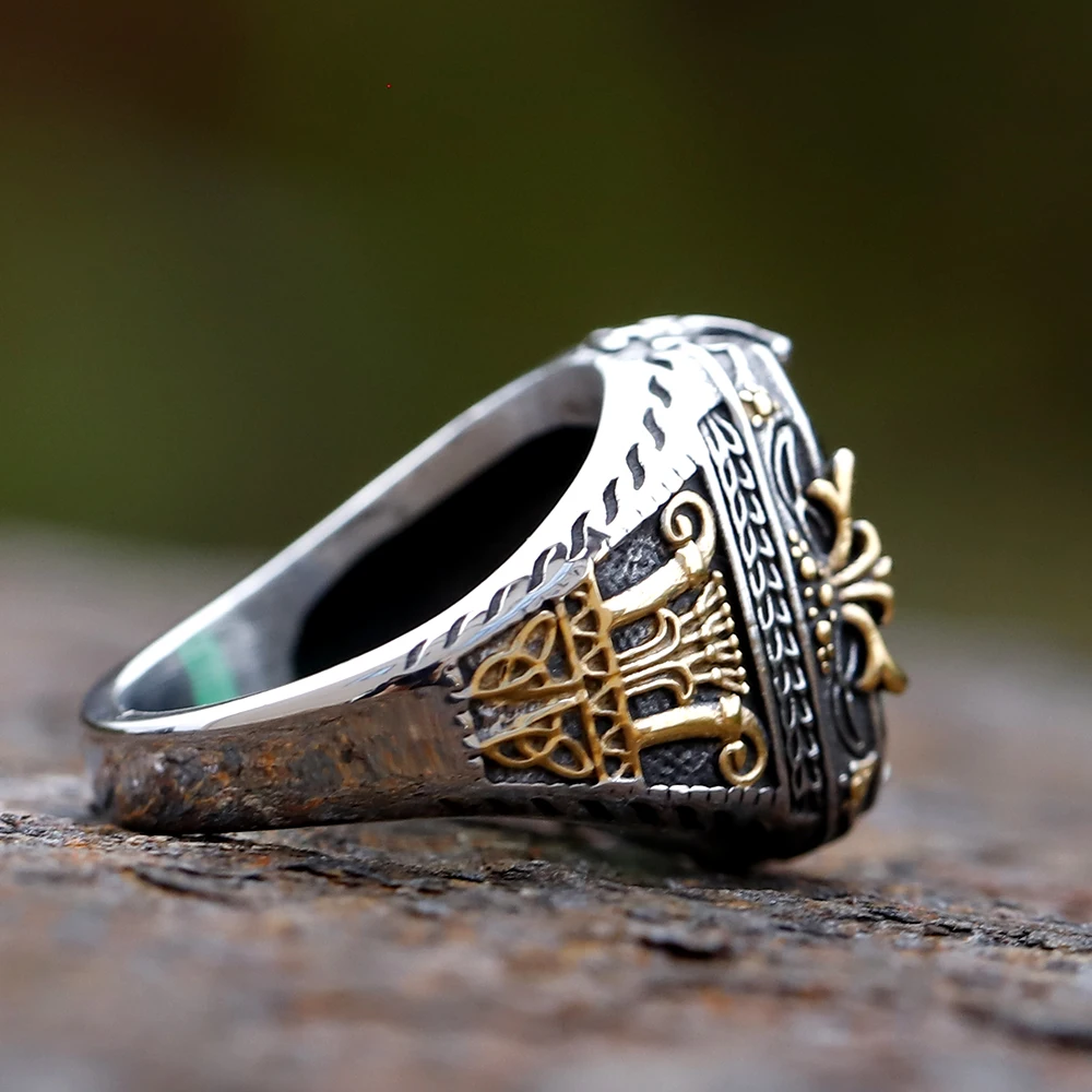 BEIER new store Double Snake King Entangled Animal Ring Green Stone Eye Men's Ring High Quality Jewelry LLBR8-599R