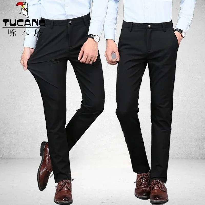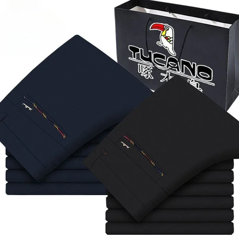 Premium Elastic Dress Trousers Men Suit Pants for Business Straight-Fit No-Iron Flat-Front Fashion Formal Pants Black Navy Blue