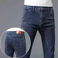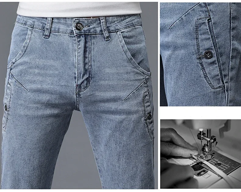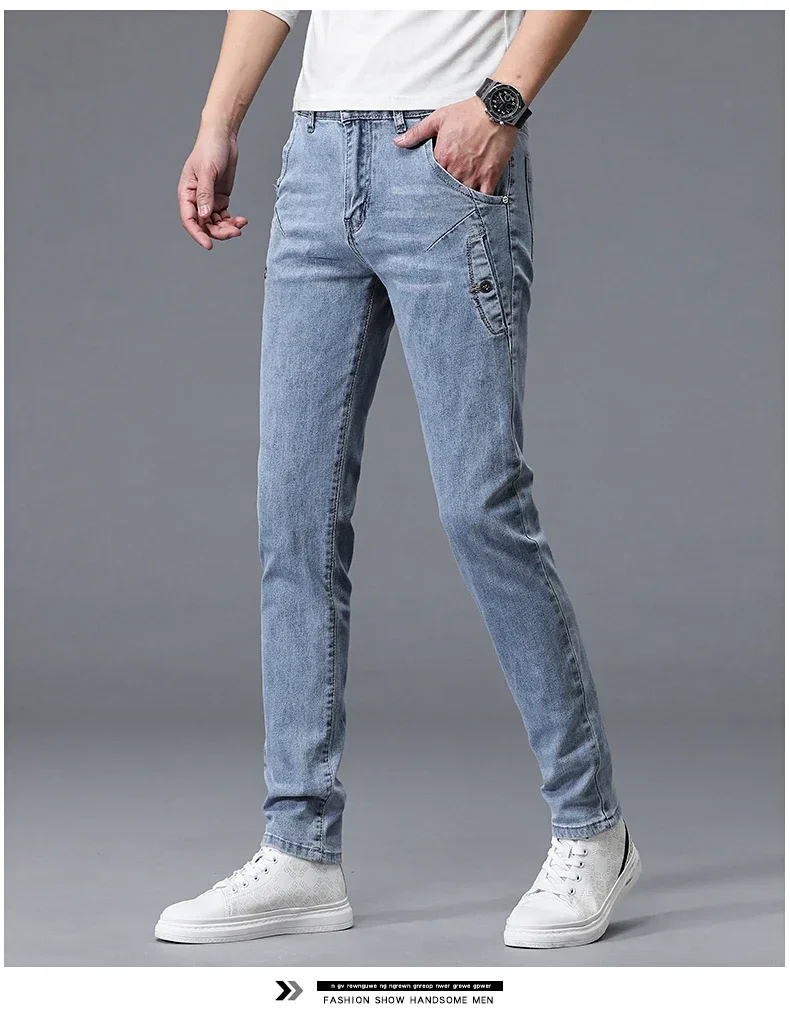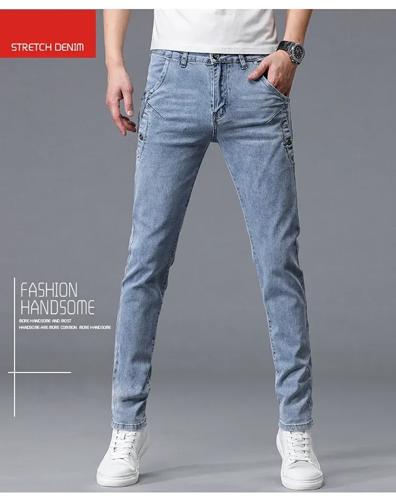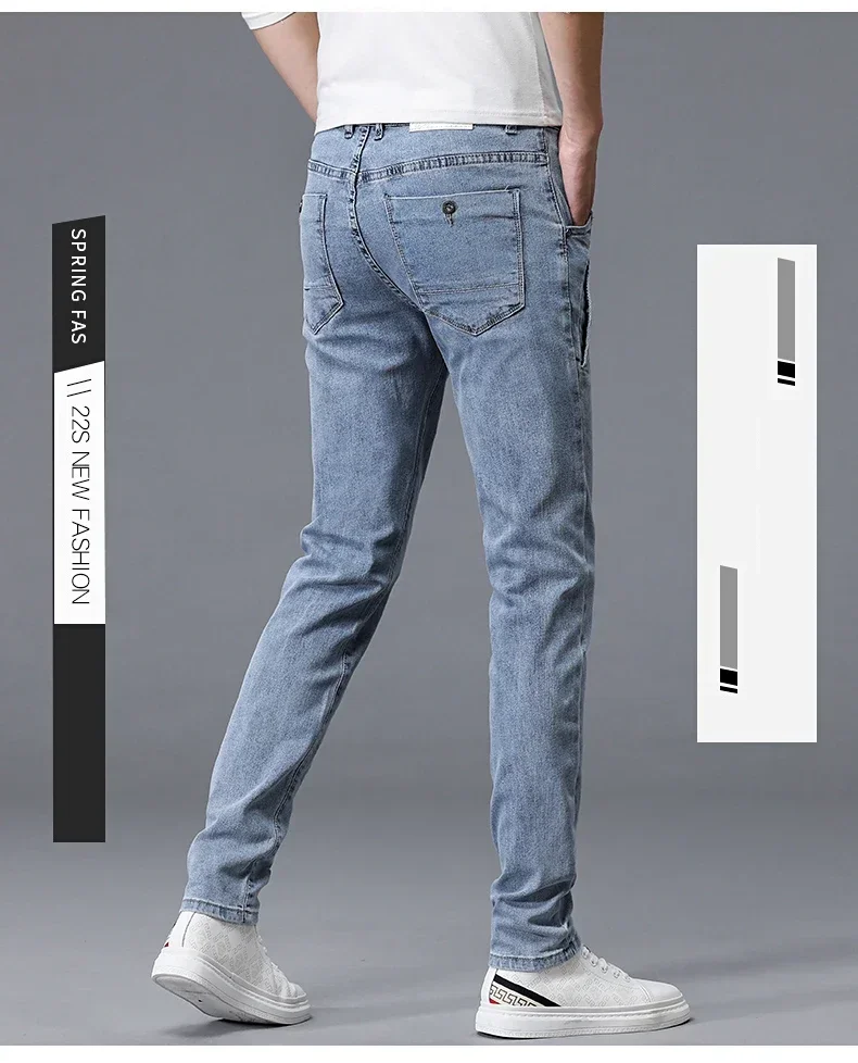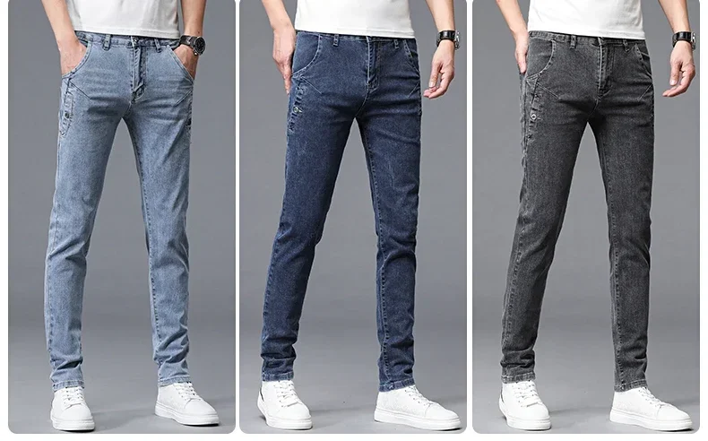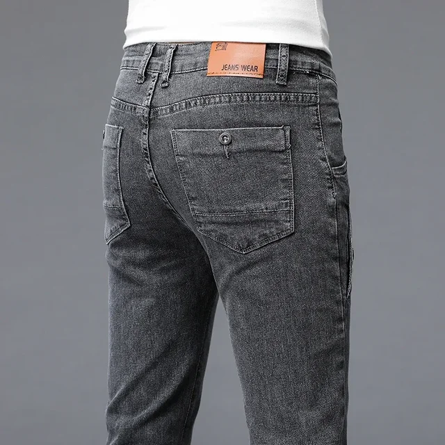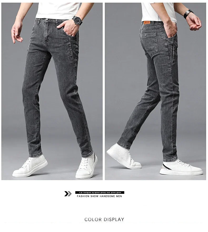 2024 New Men’s Skinny Jeans Blue Gray Cotton Elasticity Straight Pencil Foot Slim Fit Fashionable