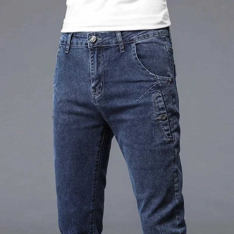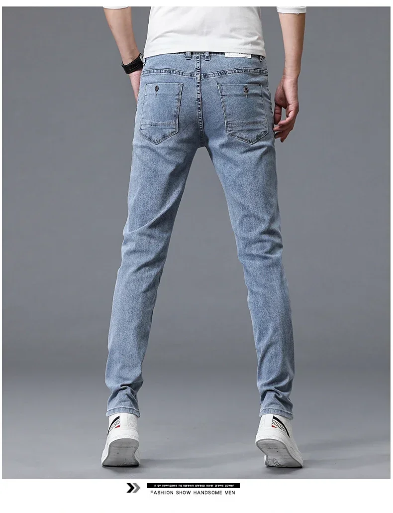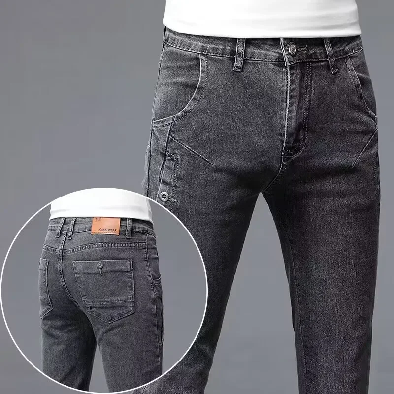 2024 New Men's Skinny Jeans Blue Gray Cotton Elasticity Straight Pencil Foot Slim Fit Fashionable Casual Denim Long Pants Male