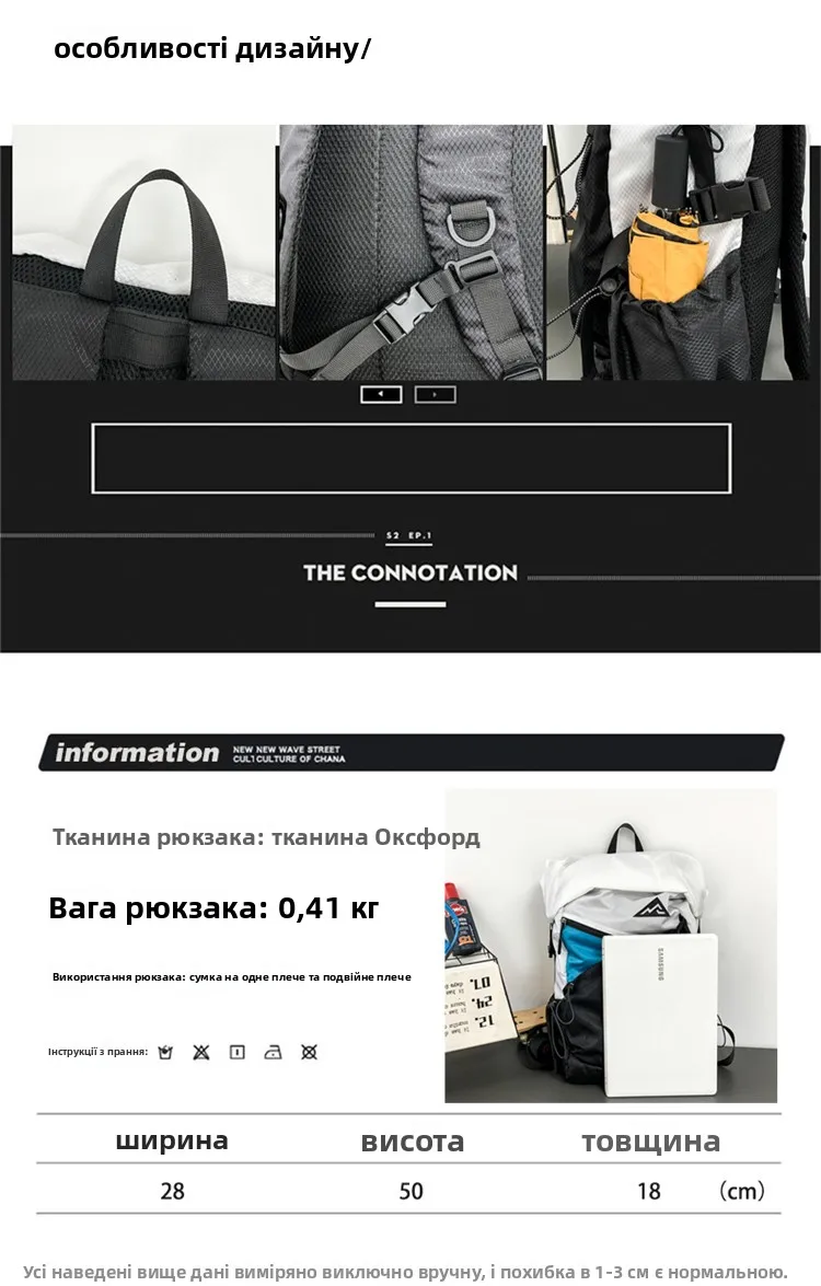 Crafted from Oxford cloth, this backpack offers durability and longevity. It withstands wear and tear, making it ideal for daily use or adventurous trips.