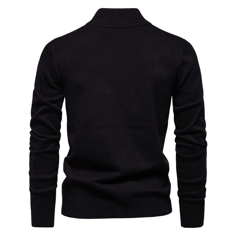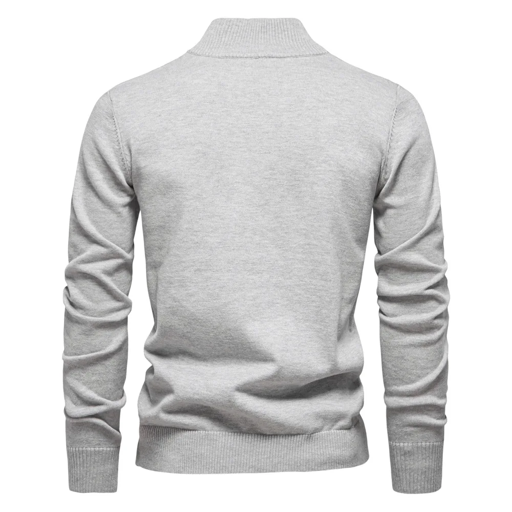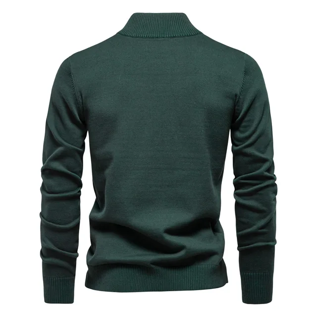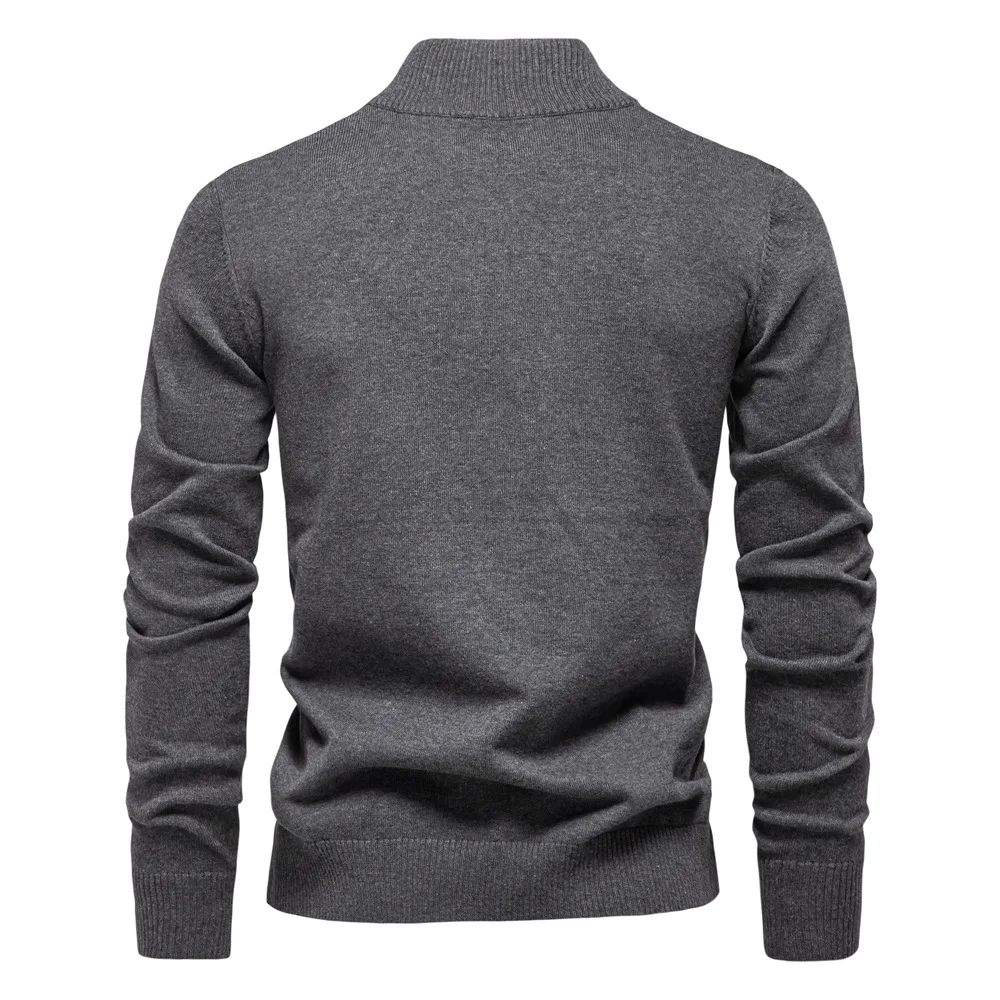 2024 New Pure Color Pure Cotton Men’s Knitted Sweater f Zipper Slim Fit Casual Top Faionable Stand