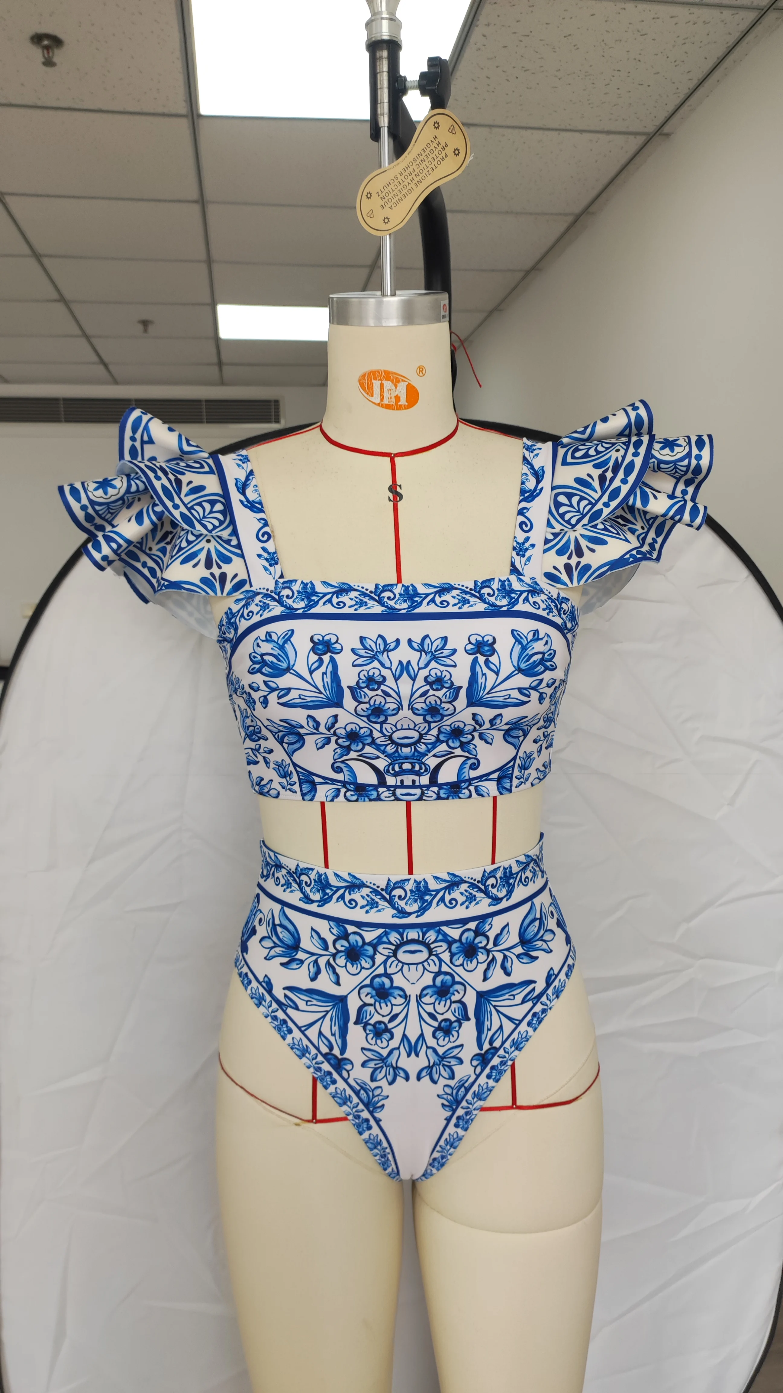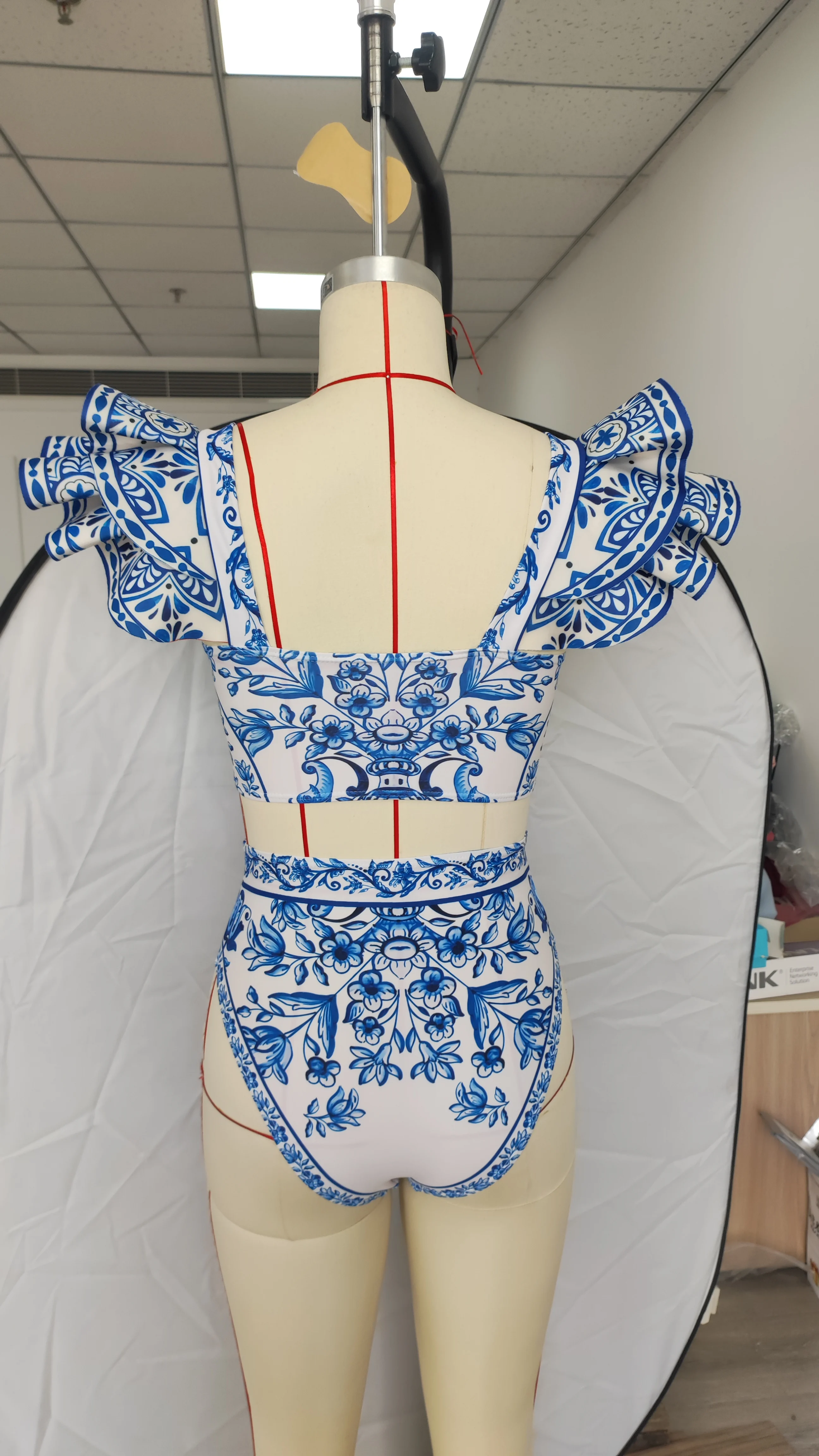 2024 New Sexy Ruffle Bikini Set Printed Brazilian Biquini Women Swimwear Skirt Bathing Suit Girls Summer