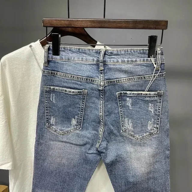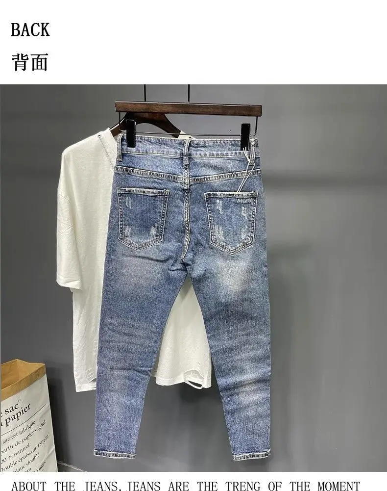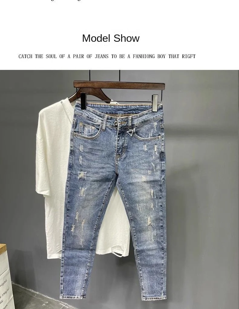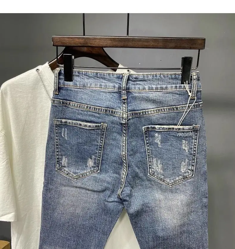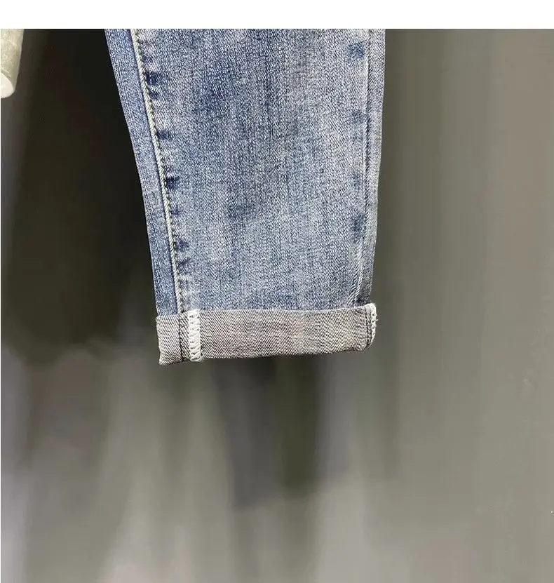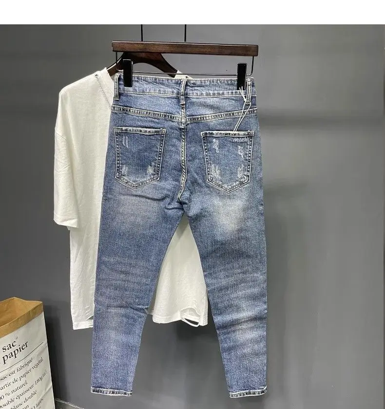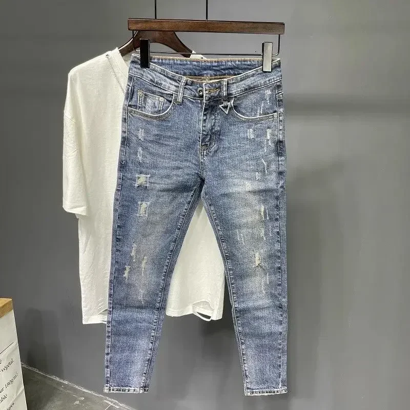 Spring and Summer Thin Men's Light Blue Slim Jeans Stylish Casual Stretch Fabric Denim Pants Classic Trousers Smoke Gray