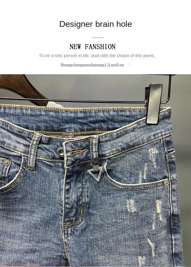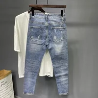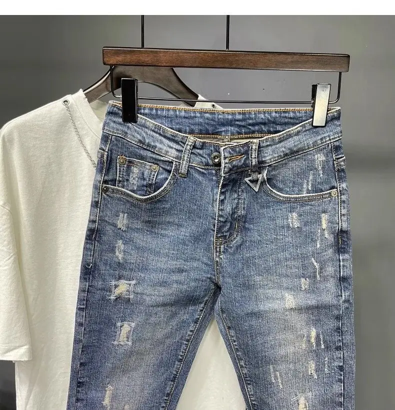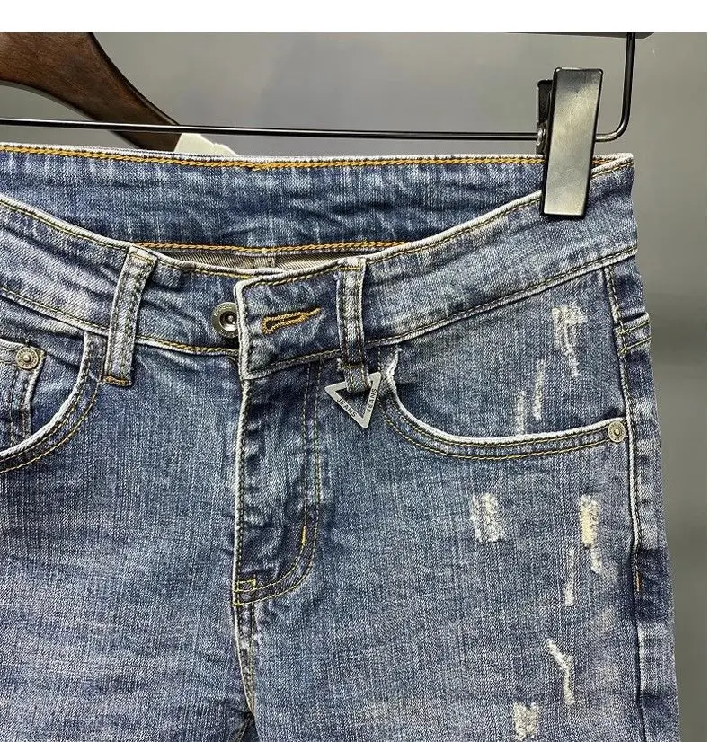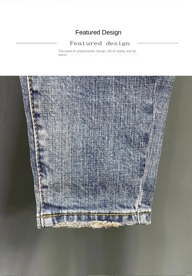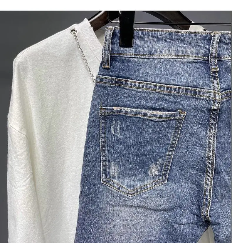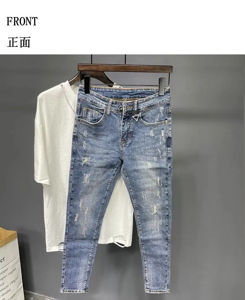 Spring and Summer Thin Men's Light Blue Slim Jeans Stylish Casual Stretch Fabric Denim Pants Classic Trousers Smoke Gray