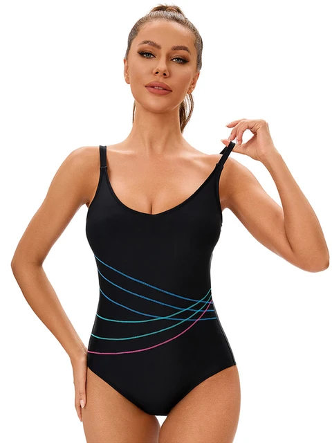Women's One Piece Athletic Racerback Swimsuit Slimming Bathing Suit Backless Swimwear