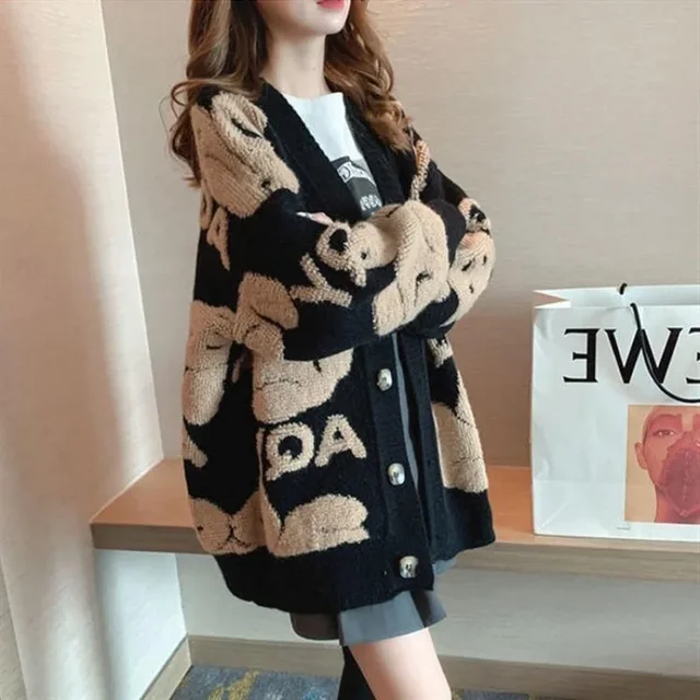 2024 New Trendy Women's Knitted Cardigan Sweater Jacket V-Neck Loose Fit Plus Size Thickened For Autumn Winter