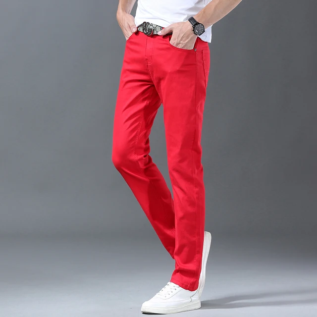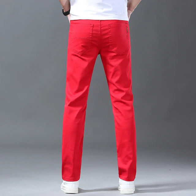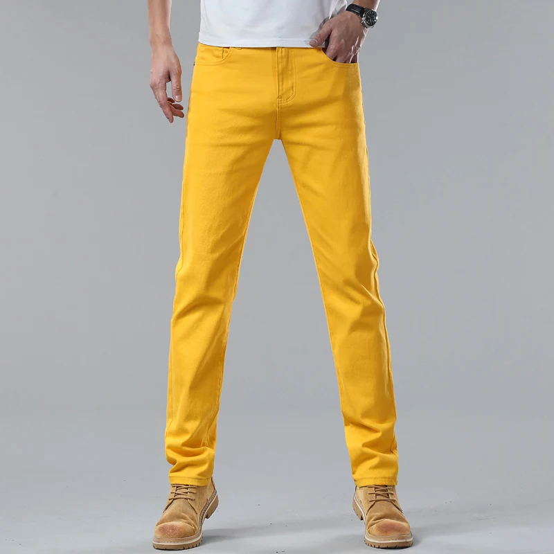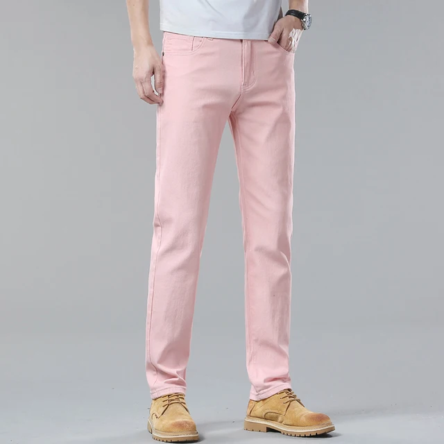2024 New White Jeans Men’s Trousers 98% Cotton Mid-waist Slim Pencil Pants Denim Pants Stretchy