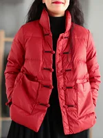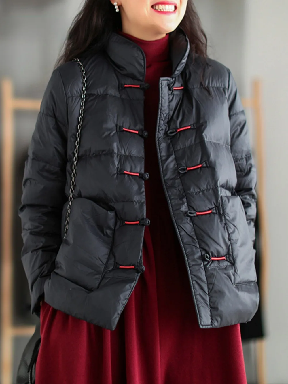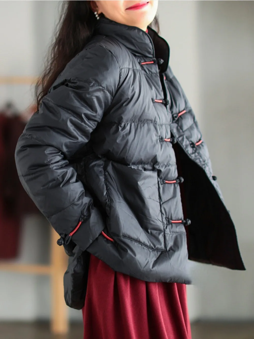 2024 New Winter Warm White Duck Down Coat Women Vintage Slim Short Jacket Autumn Female Embroidery Casual Basic Parkas