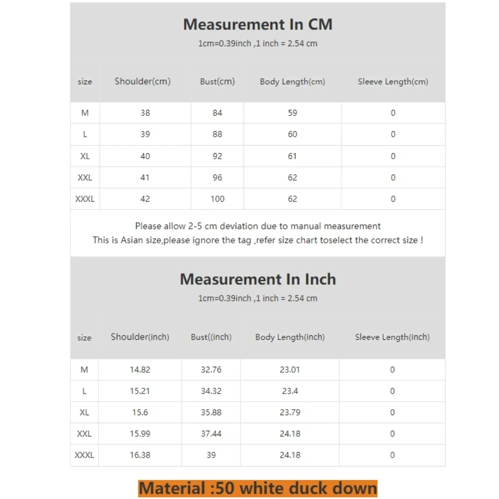 Material :50 white duck down
