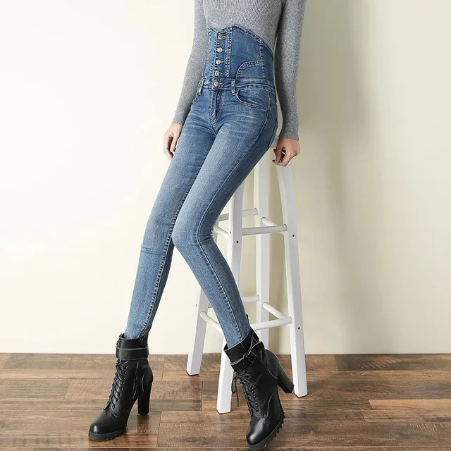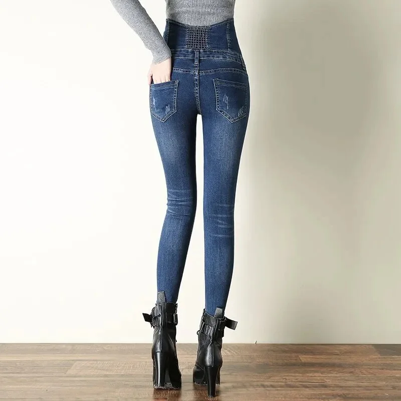 2024 New Womens Pants High Waist Simple Elastic Skinny Denim Long Pencil Woman Jeans Camisa Feminina