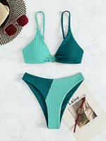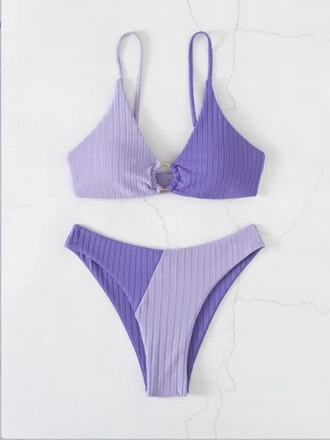 2025 new European and American love neck gathering bikini Brazilian sexy metal buckle solid color split cross-border swimsuit