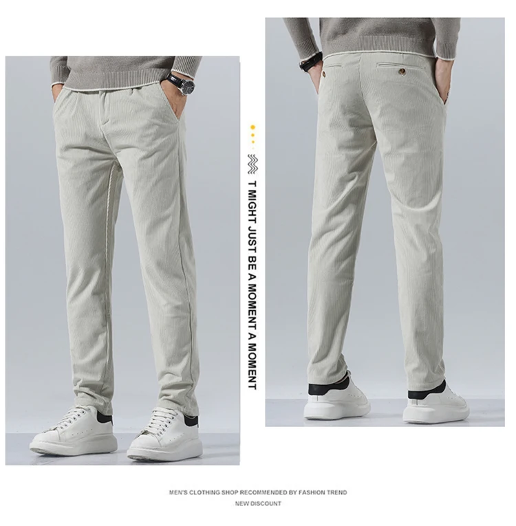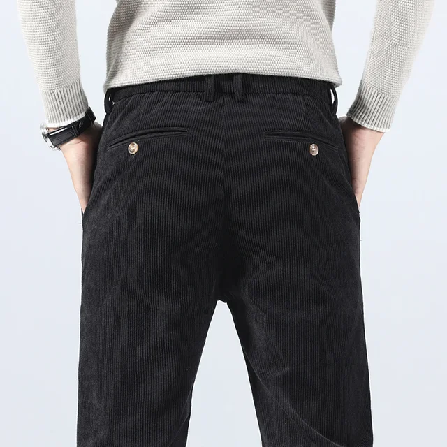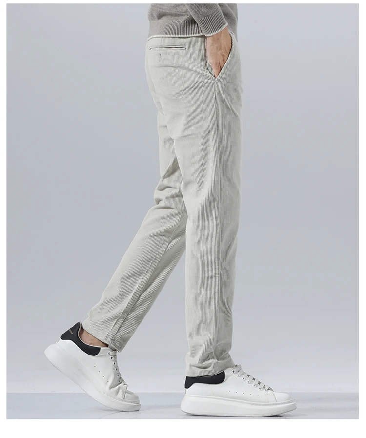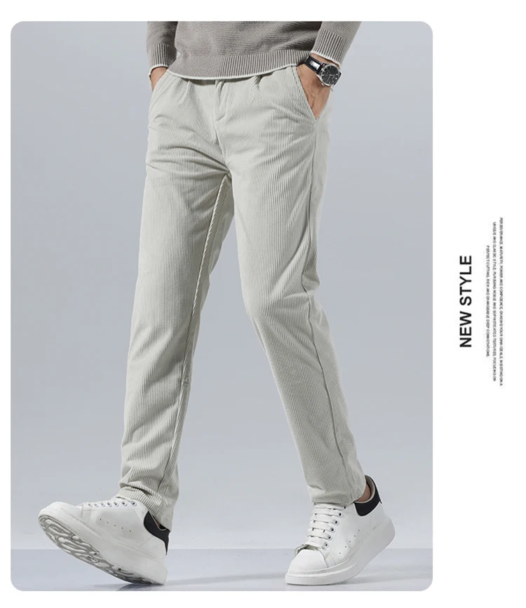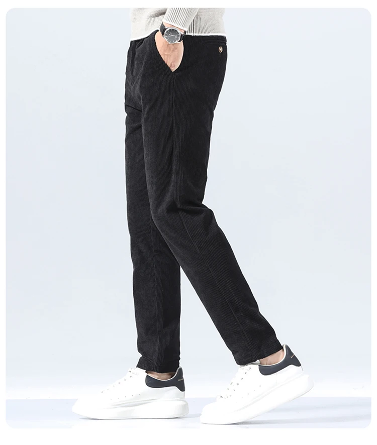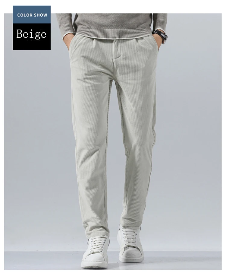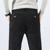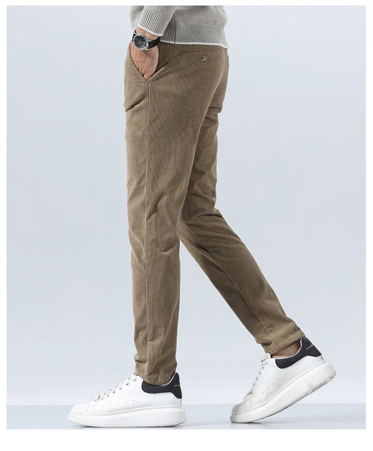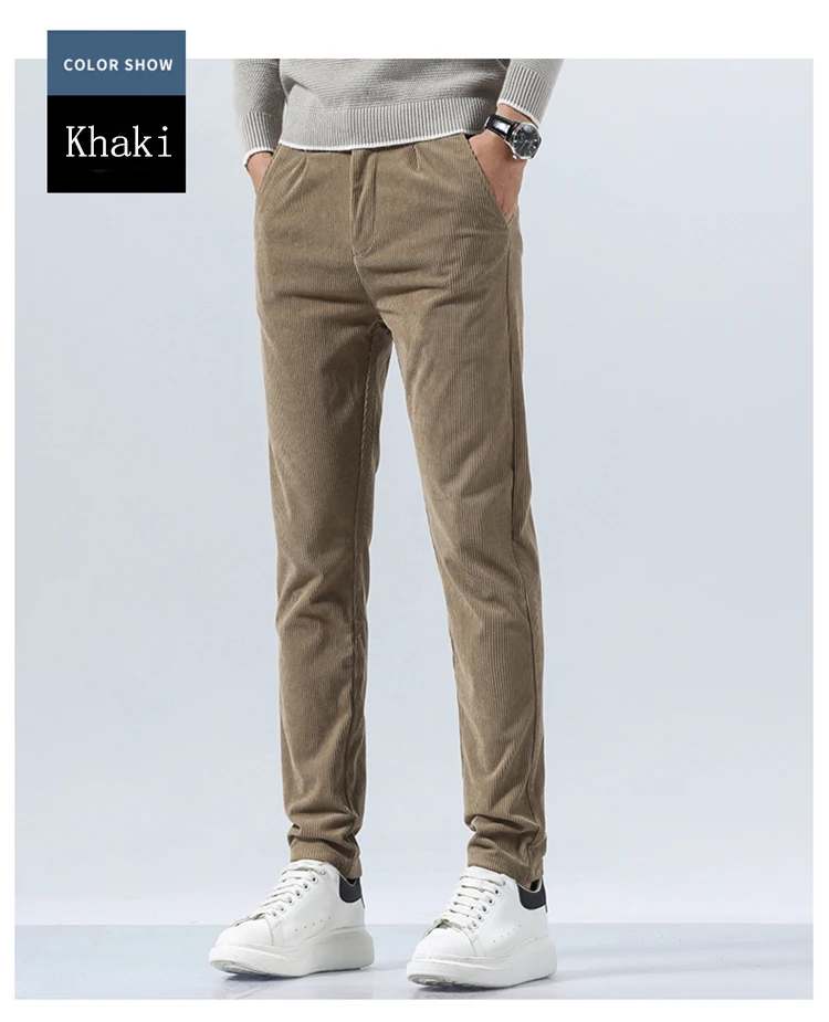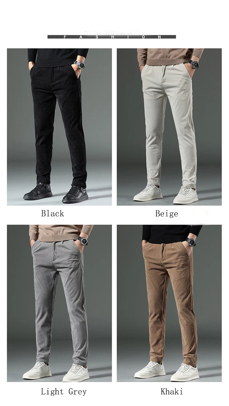 2024 Spring Autumn Men’s Corduroy Casual Pants Business Fashion Solid Color Elastic Regular Fit