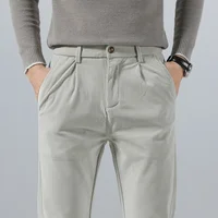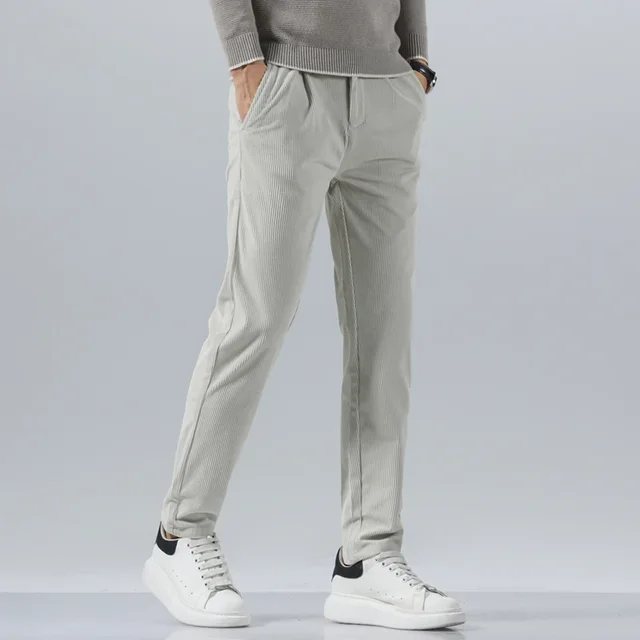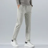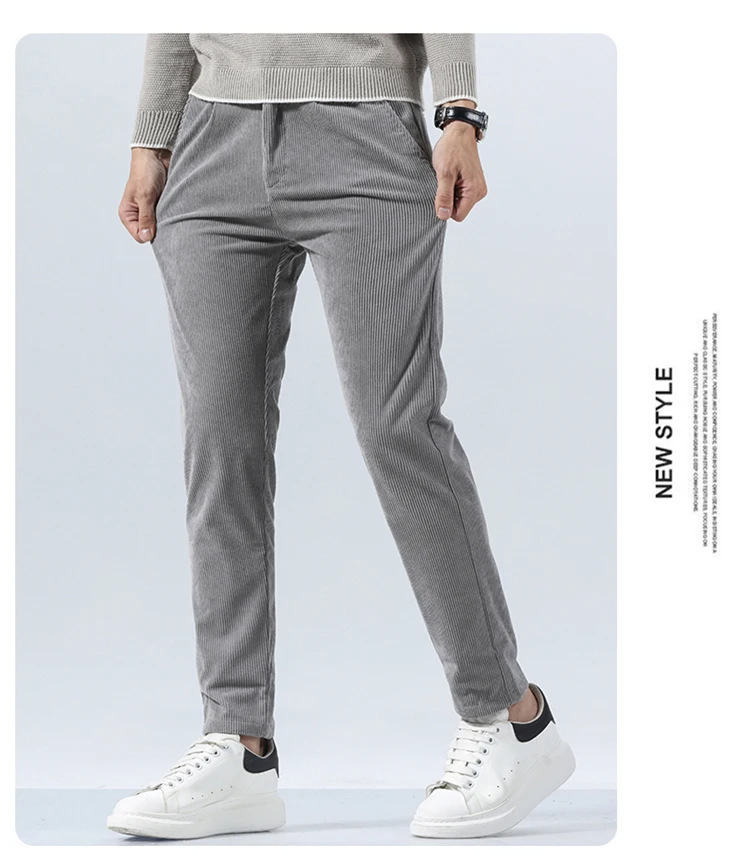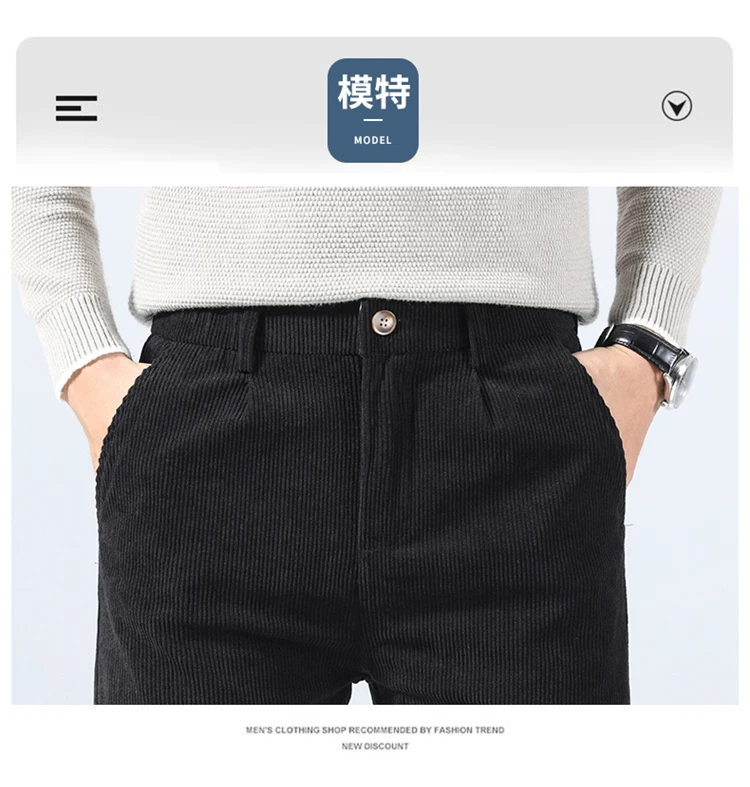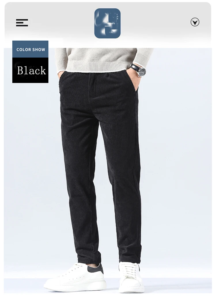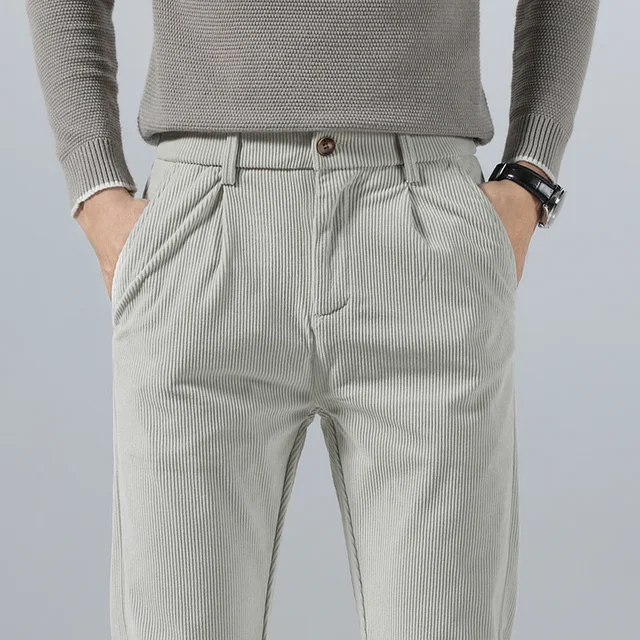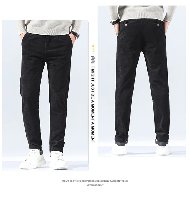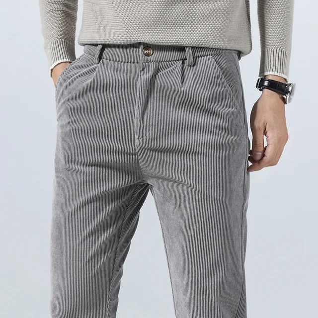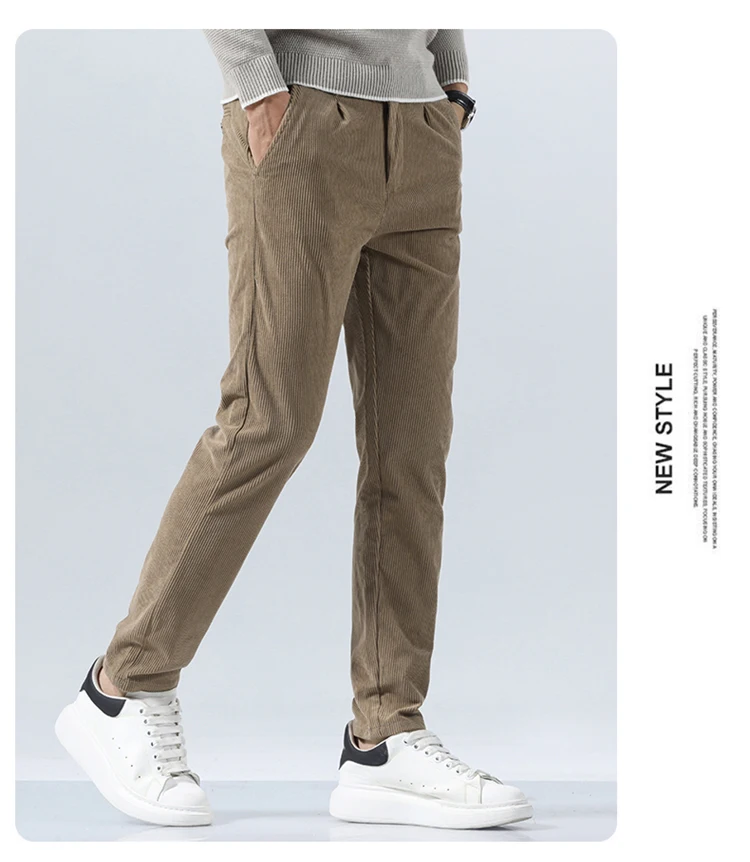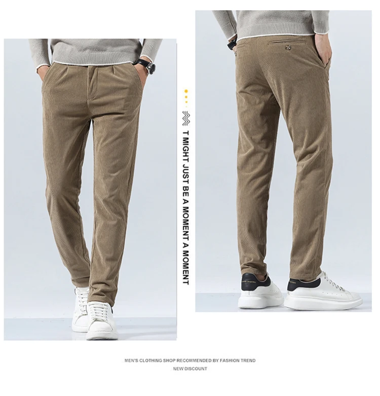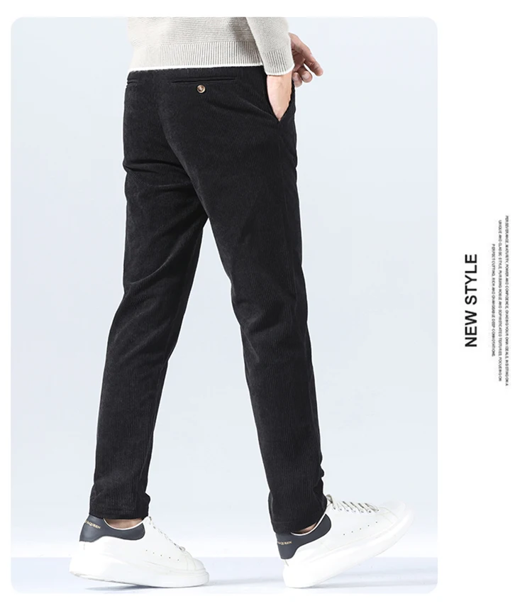 2024 Spring Autumn Men’s Corduroy Casual Pants Business Fashion Solid Color Elastic Regular Fit