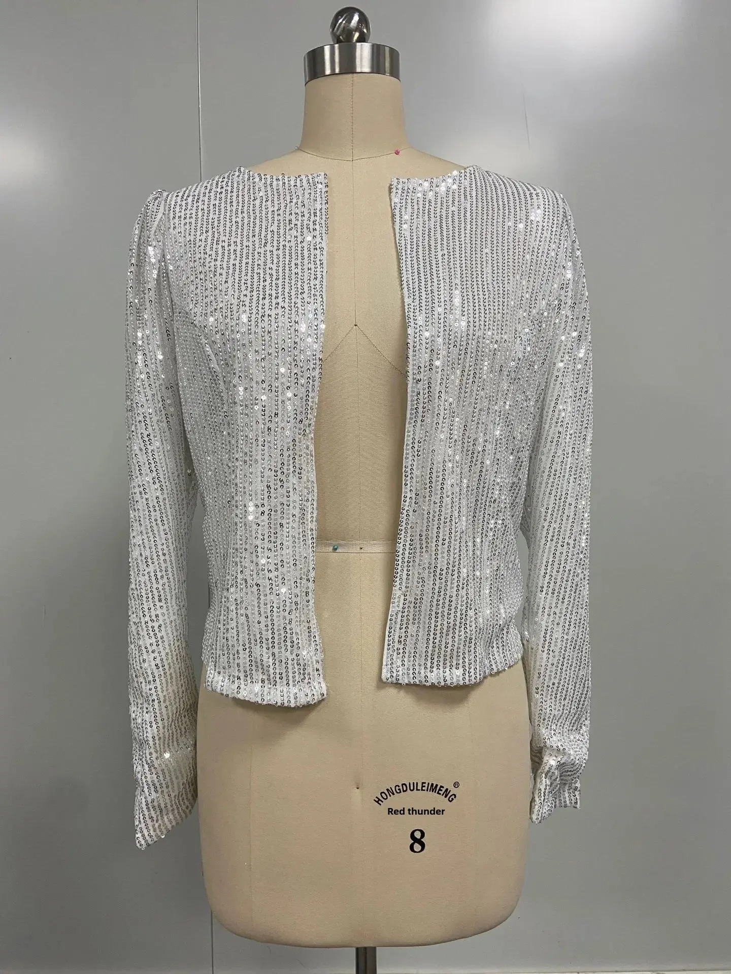Be the first to review “2024 Spring New European American Women’s Fashion Stand Collar Solid Color Sequin Jacket Cropped”