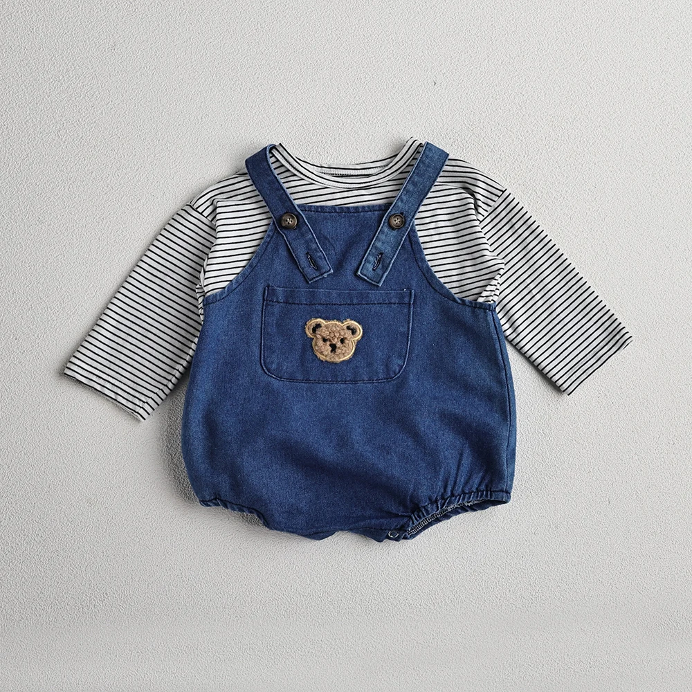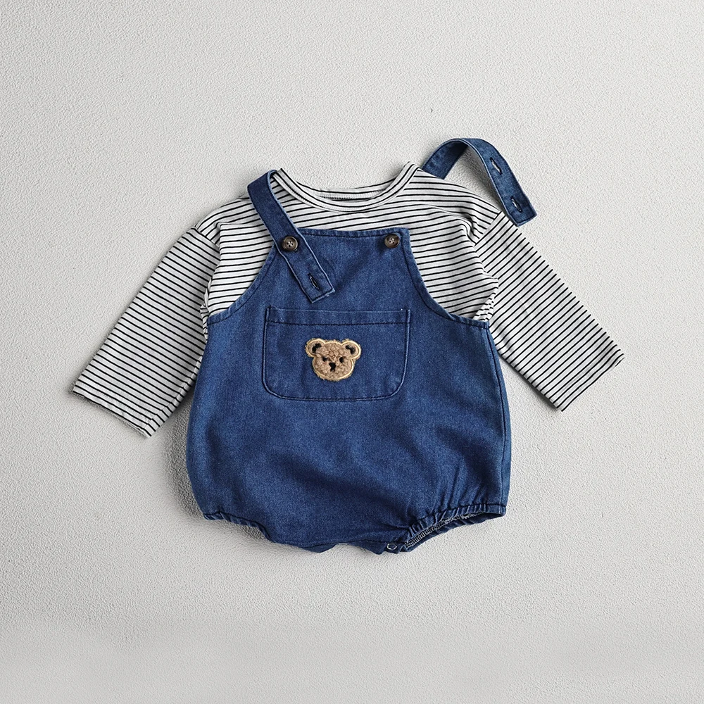 Summer best maching baby’s denim overall and t-shirt set. It’s made of very soft washed denim materail, make no harm to baby’s skin.
